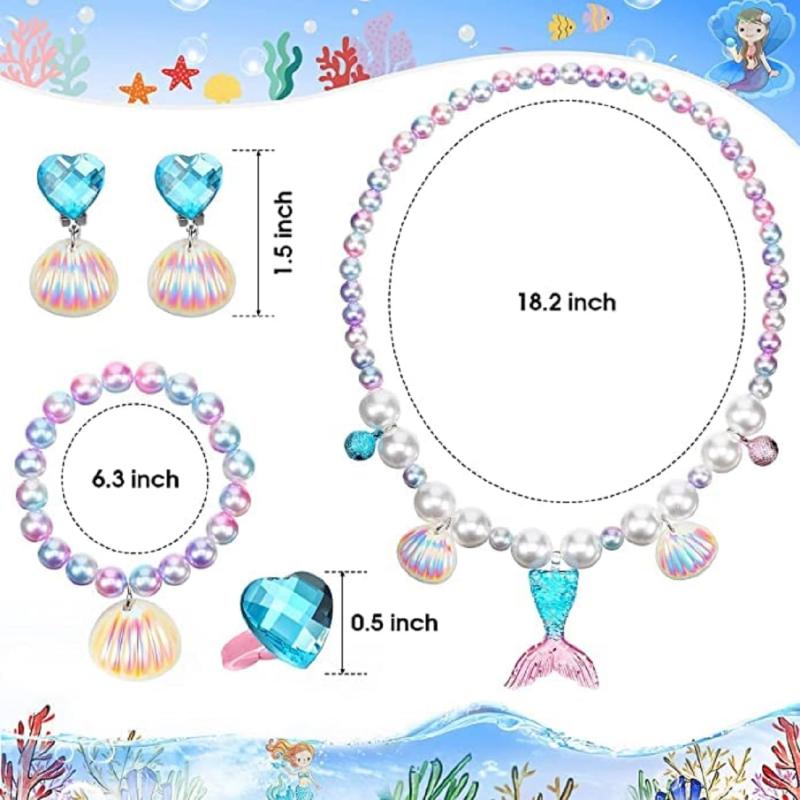 Complete your mermaid look with this stunning jewelry set. Perfect for birthday parties, princess dress up, Halloween costumes, and more!
