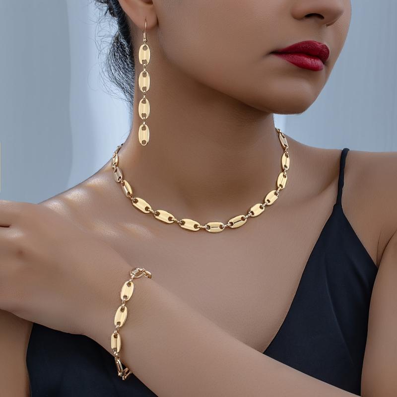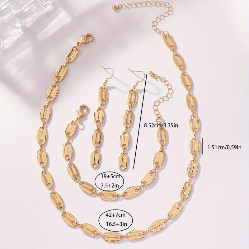 Complete your vacation style with this edgy metal punk jewelry set featuring a nose stud, chain earrings, bracelet, and necklace.