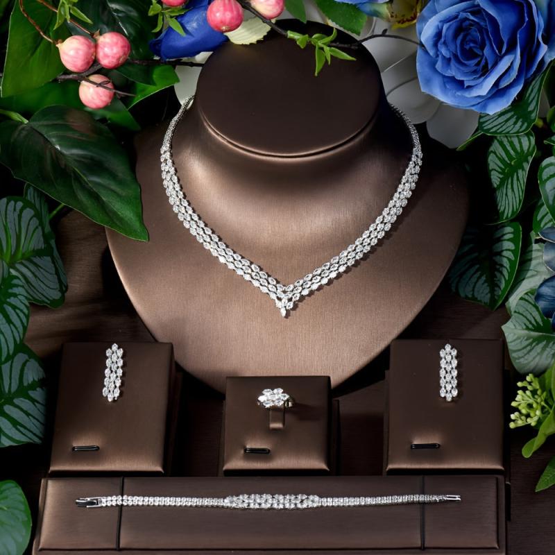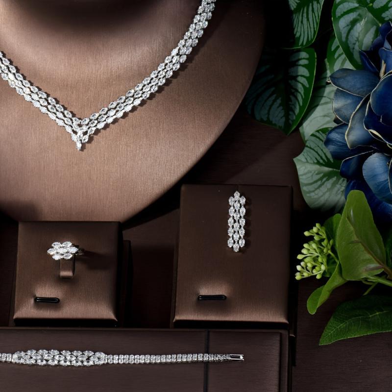 This stunning jewelry set is perfect for parties and weddings. Featuring intricate zirconia detailing and a luxurious gold-plated finish, this set is suitable for year-round wear.