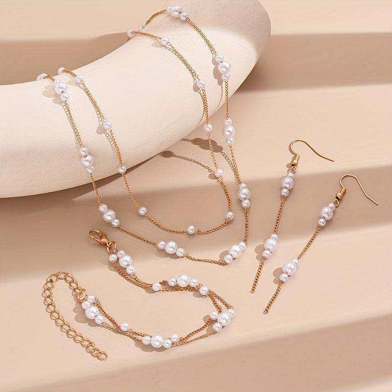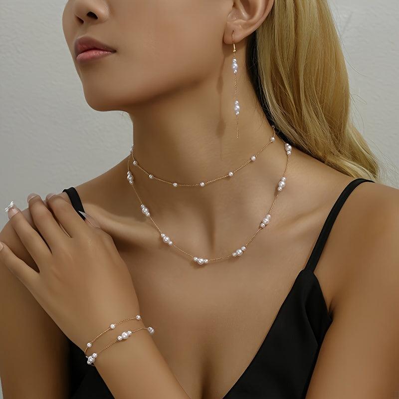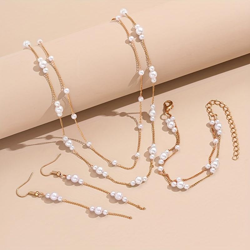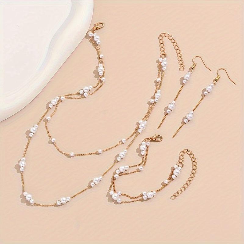 Elevate your style with this 4-piece minimalist jewelry set featuring a layered necklace, earrings, and bracelet. Perfect for everyday wear or special occasions.
