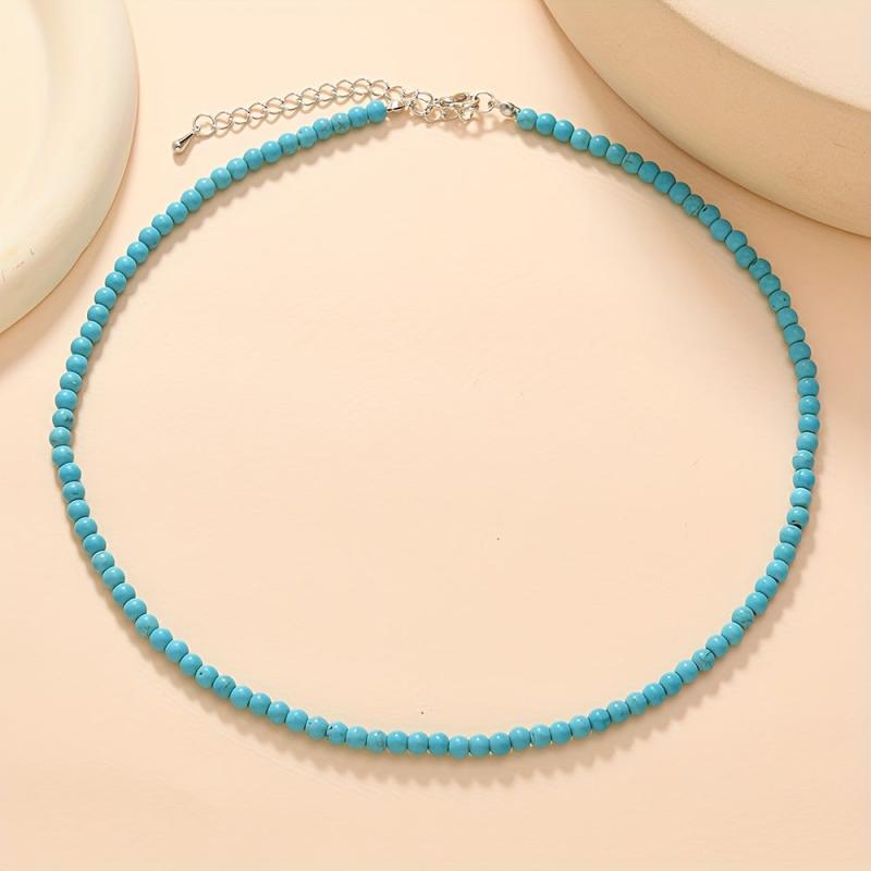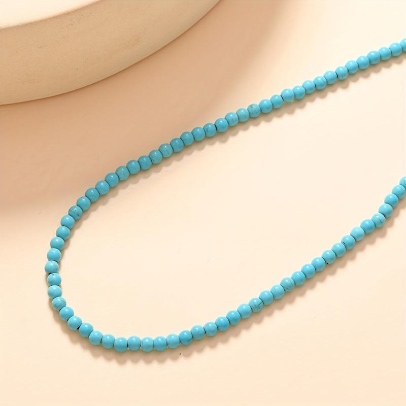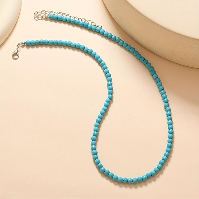This stunning turquoise bead necklace is perfect for vacation style and sea-inspired looks. It can be worn on a daily basis or for special occasions as a versatile accessory that complements any outfit. The all-season stone adds a touch of elegance to your ensemble.