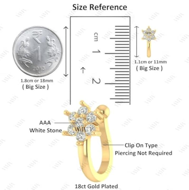 Get the look of a nose ring without the piercing with these clip-on press nose ring studs. Easy to use and comfortable to wear.