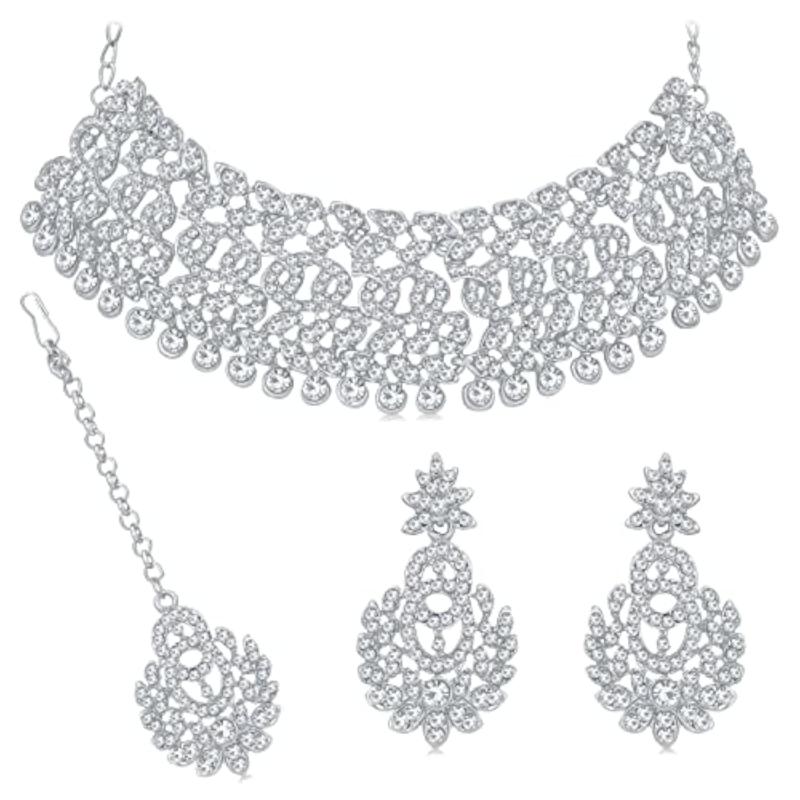 Elegant choker necklace set with Austrian diamonds for a traditional look