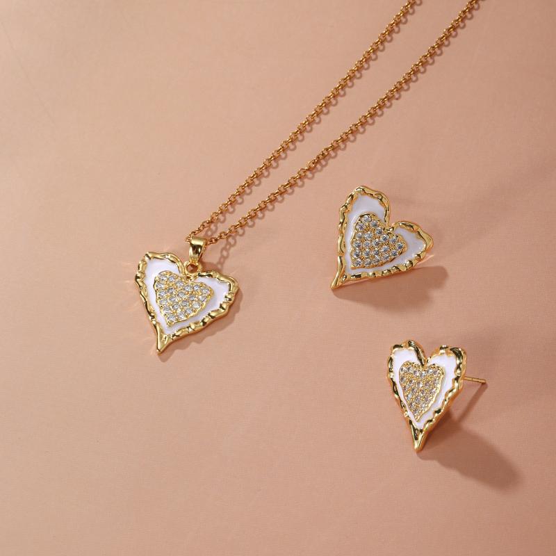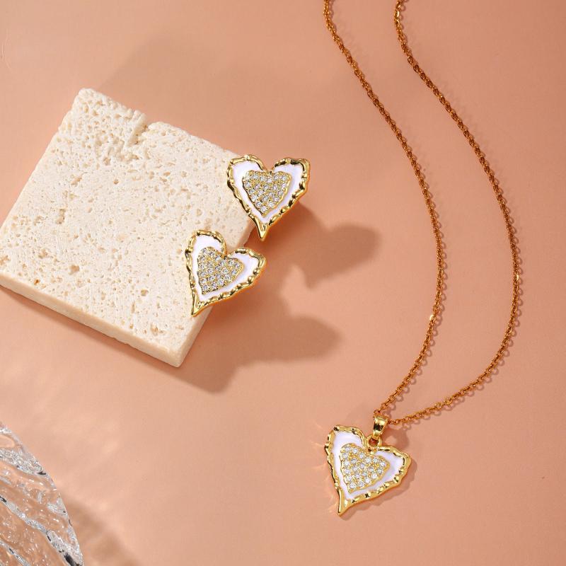 Complete your beach look with this stylish two-piece jewelry set featuring a peach heart design. Made of high-quality stainless steel, this set is hypoallergenic and perfect for vacation wear.