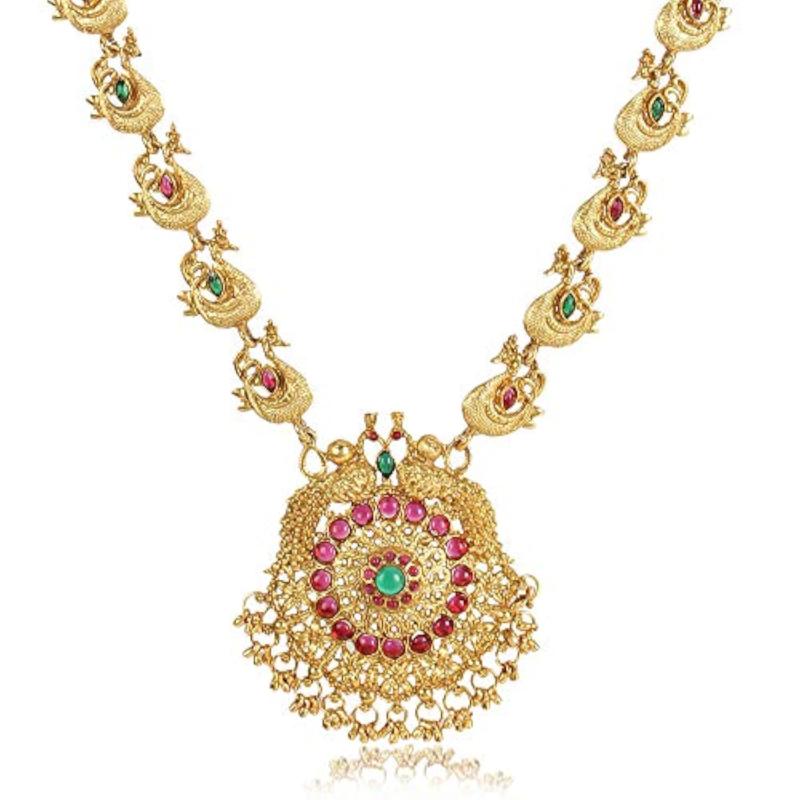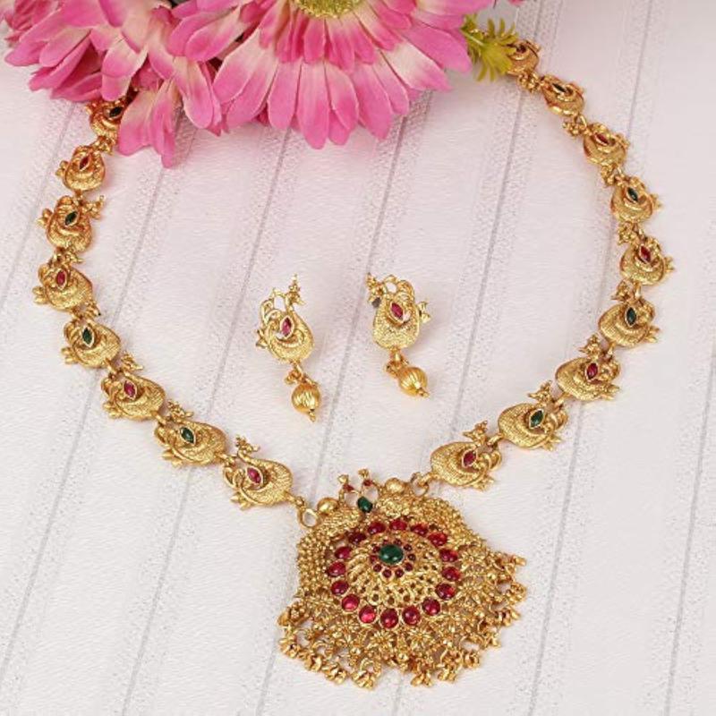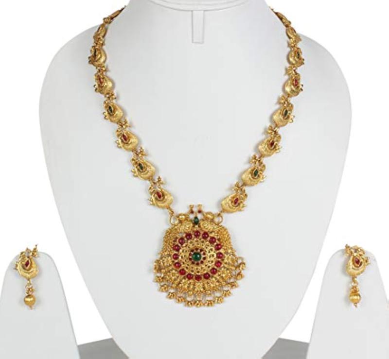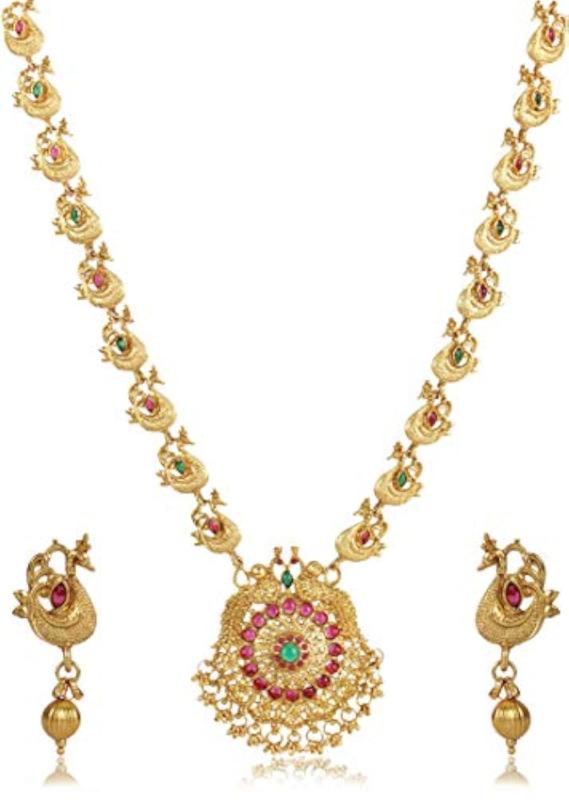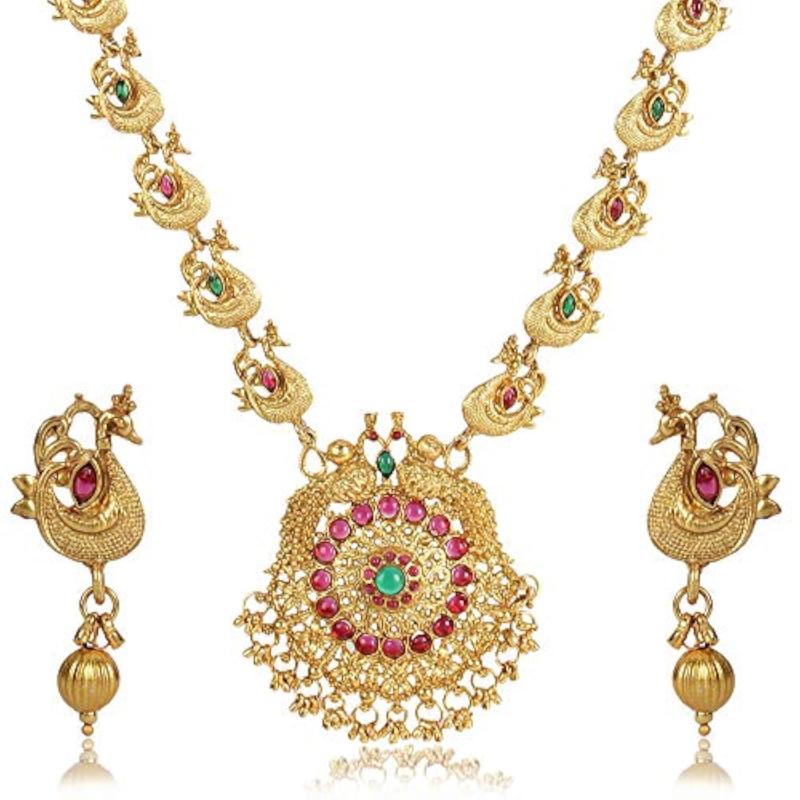 Elegant and beautiful Peacock 18k plated necklace set for a traditional look.