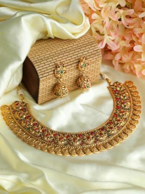 Elegant jewellery set with traditional peacock pattern design. Perfect for special occasions and daily wear.