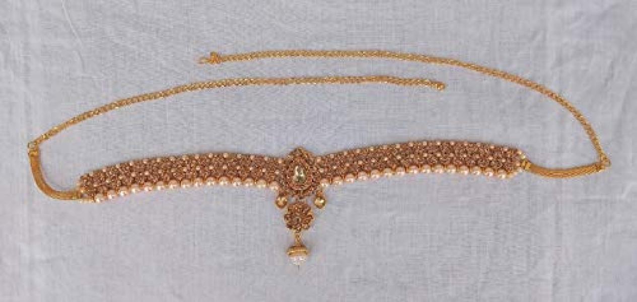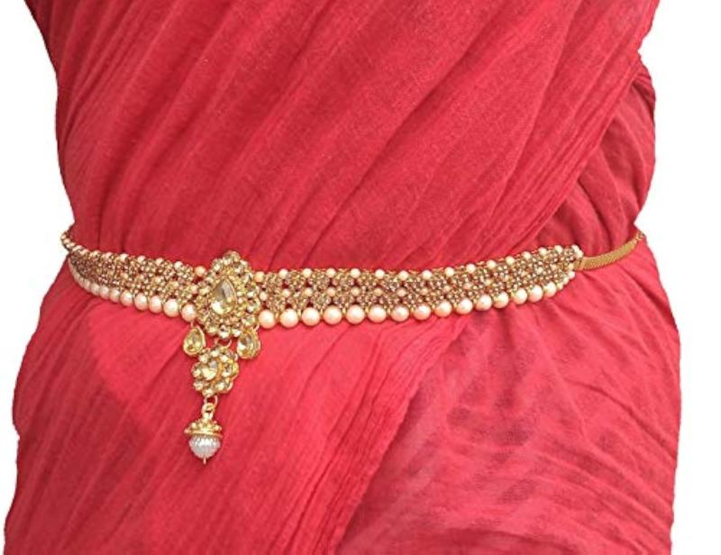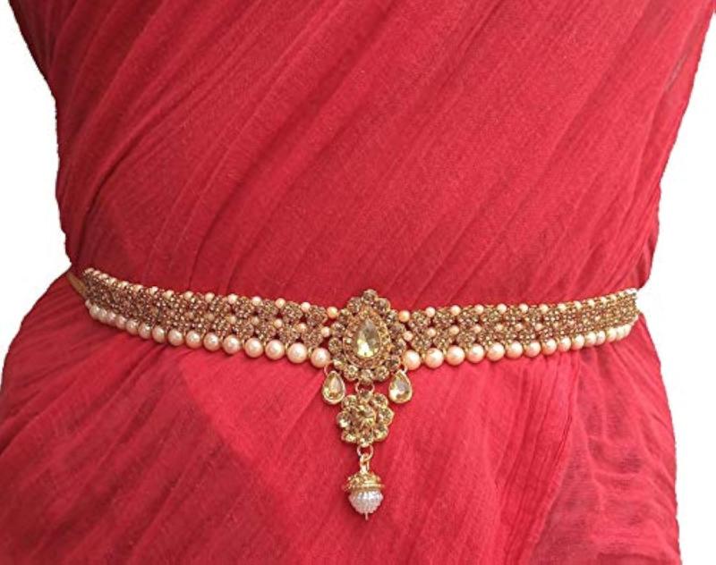 Elegant kamarbelt featuring pearls and stones, perfect for traditional outfits and special occasions.