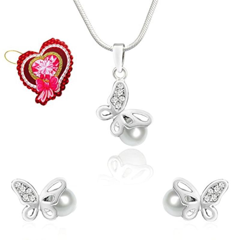 Elegant pendant set featuring artificial pearls and CZ stones, comes with a heart-shaped card. Perfect for gifting or special occasions.
