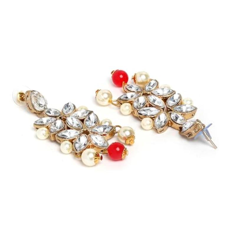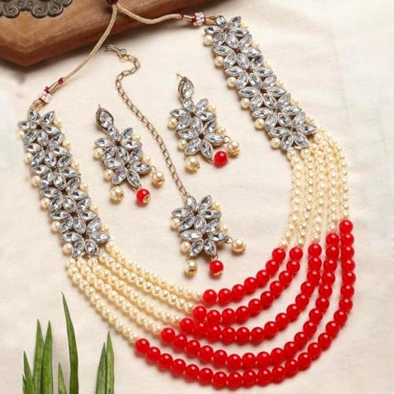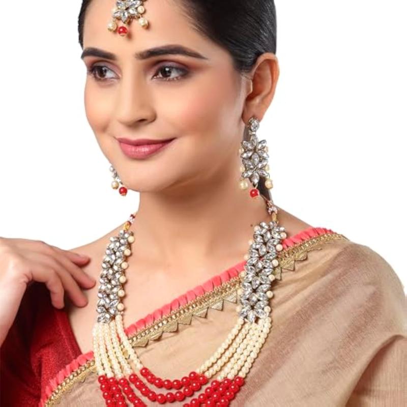 Elegant pearl and kundan necklace set with traditional design.