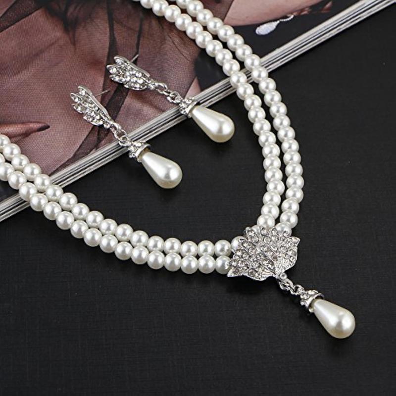Enhance your traditional attire with this elegant pearl necklace set. Perfect for special occasions, weddings, or cultural events.