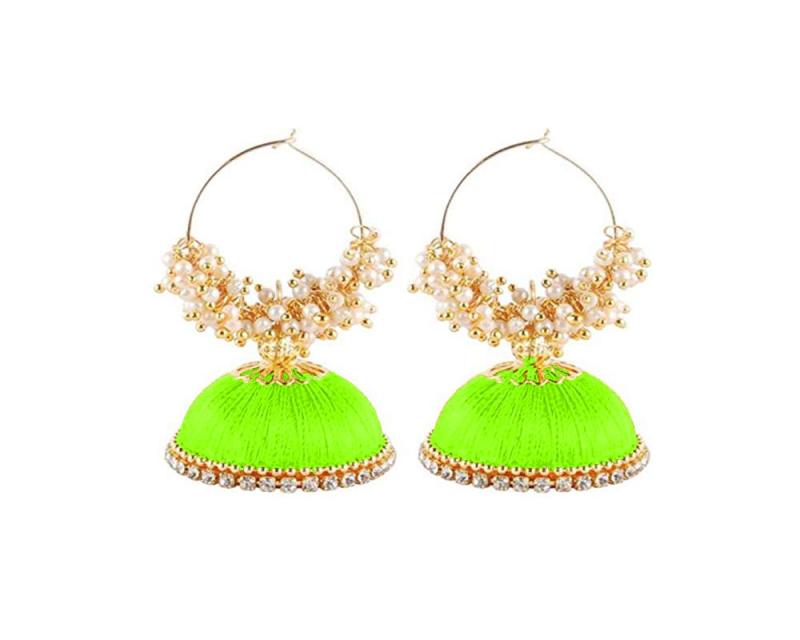 Elegant jhumka earrings with a combination of plastic and silk material. Perfect accessory to elevate your look.
