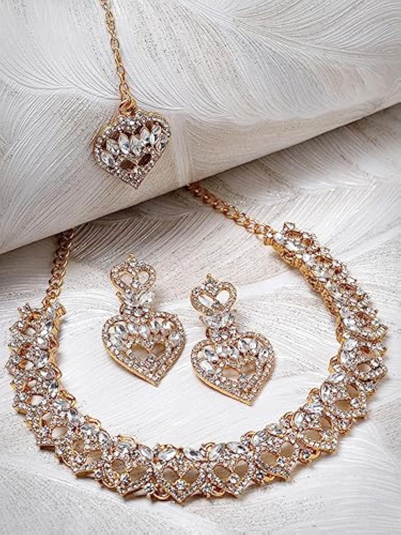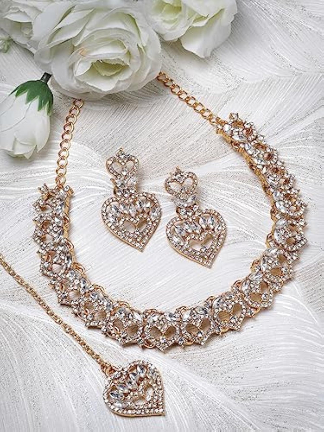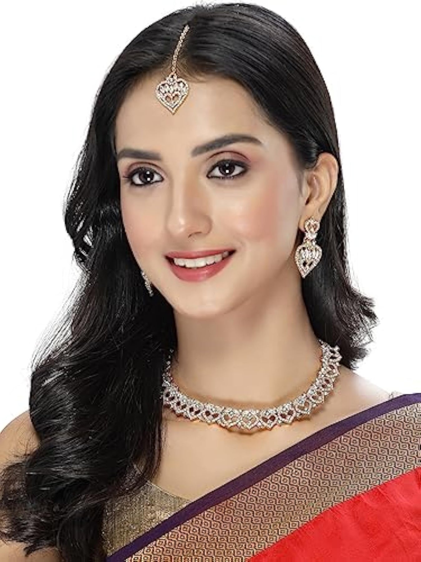 Elegant and stunning jewellery set featuring AD stone embellishments. Perfect for special occasions.