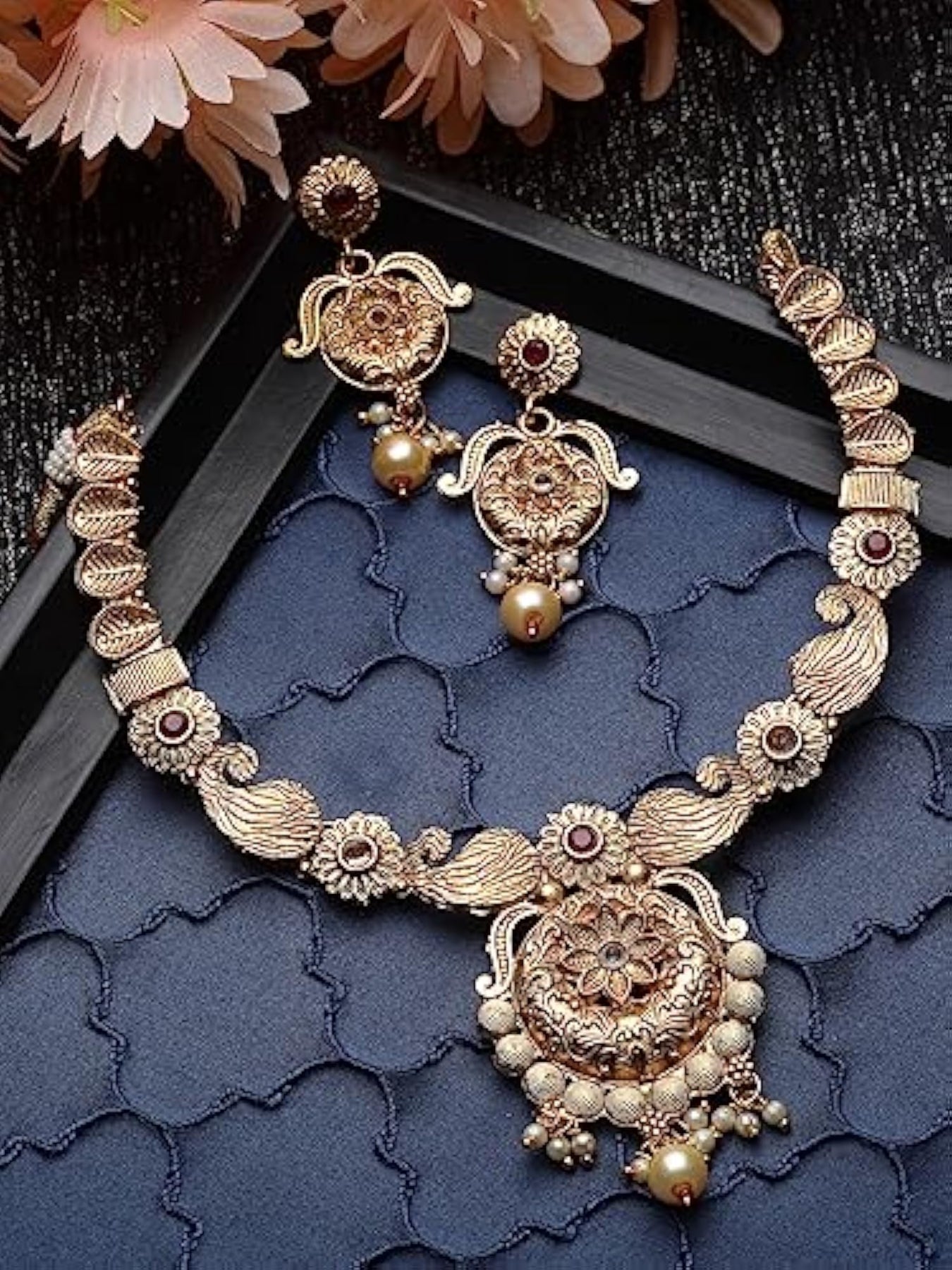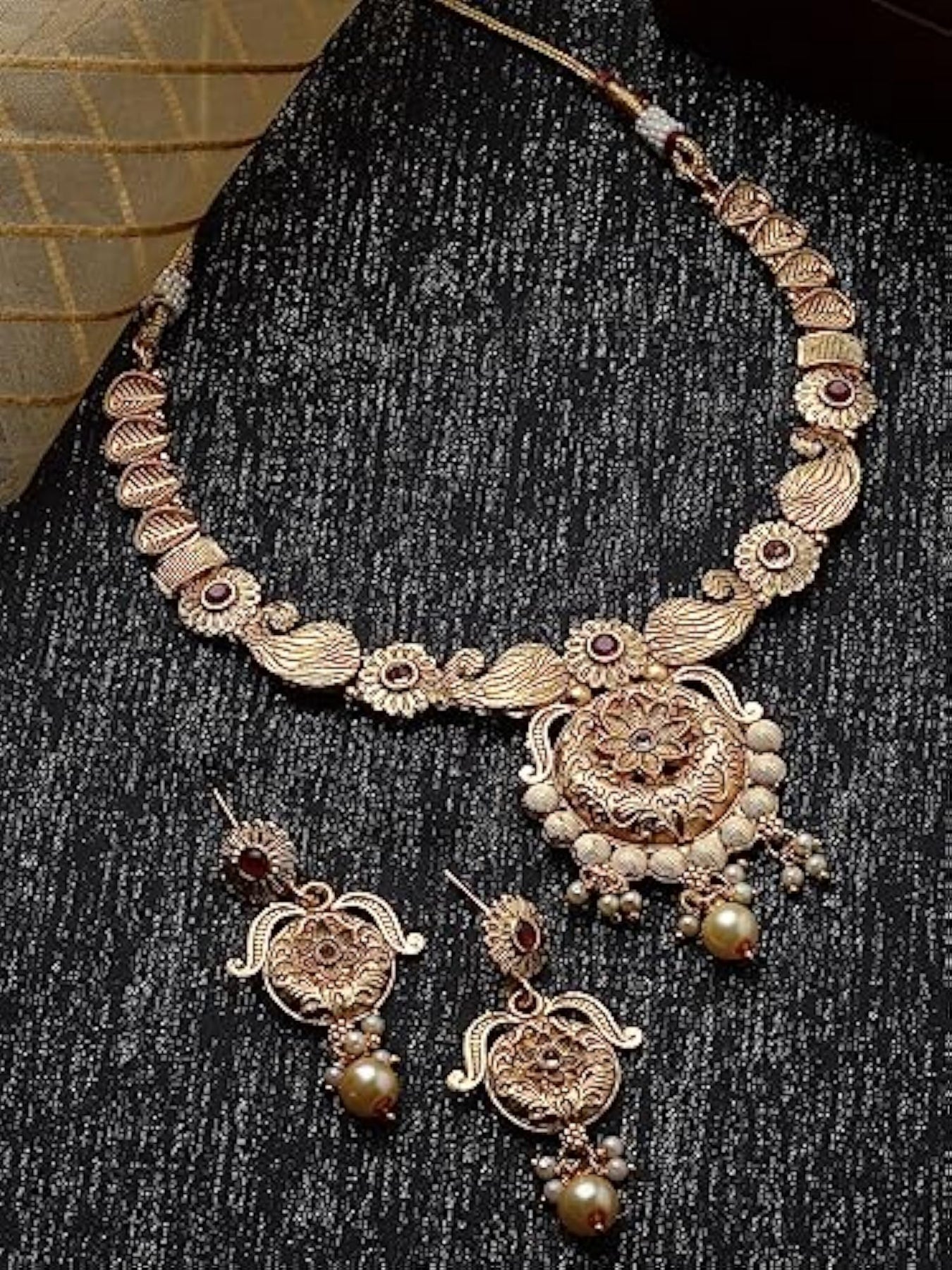 Elegant and sophisticated necklace and earring set made with plated copper beads. Perfect for adding a touch of style to any outfit.