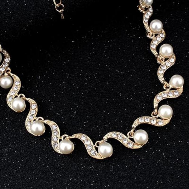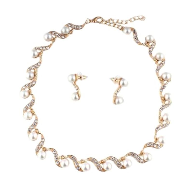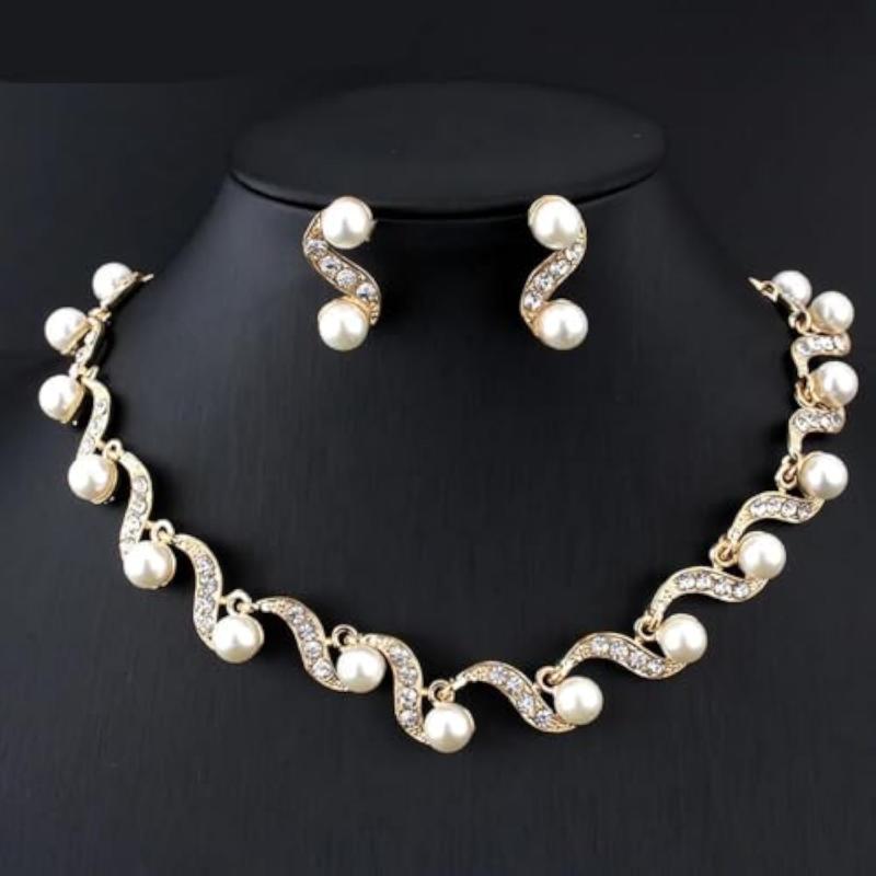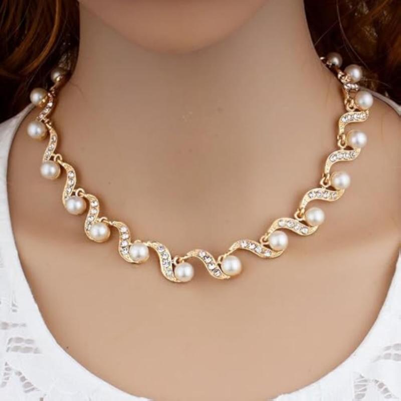 Elegant and stylish necklace jewellery set with pearls in a plated design.