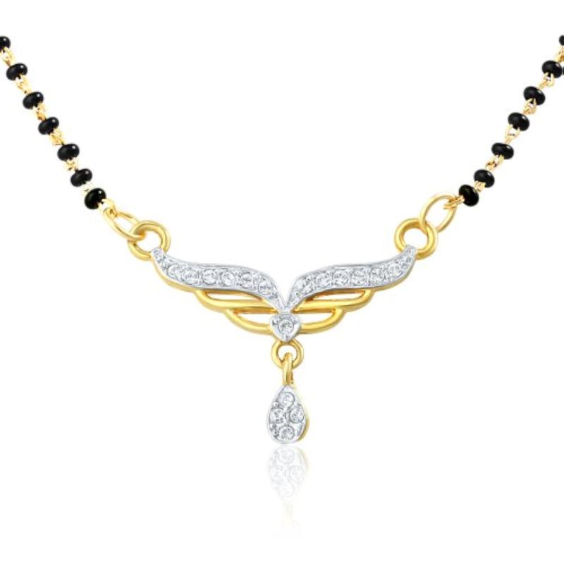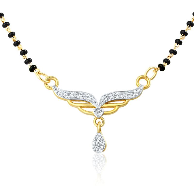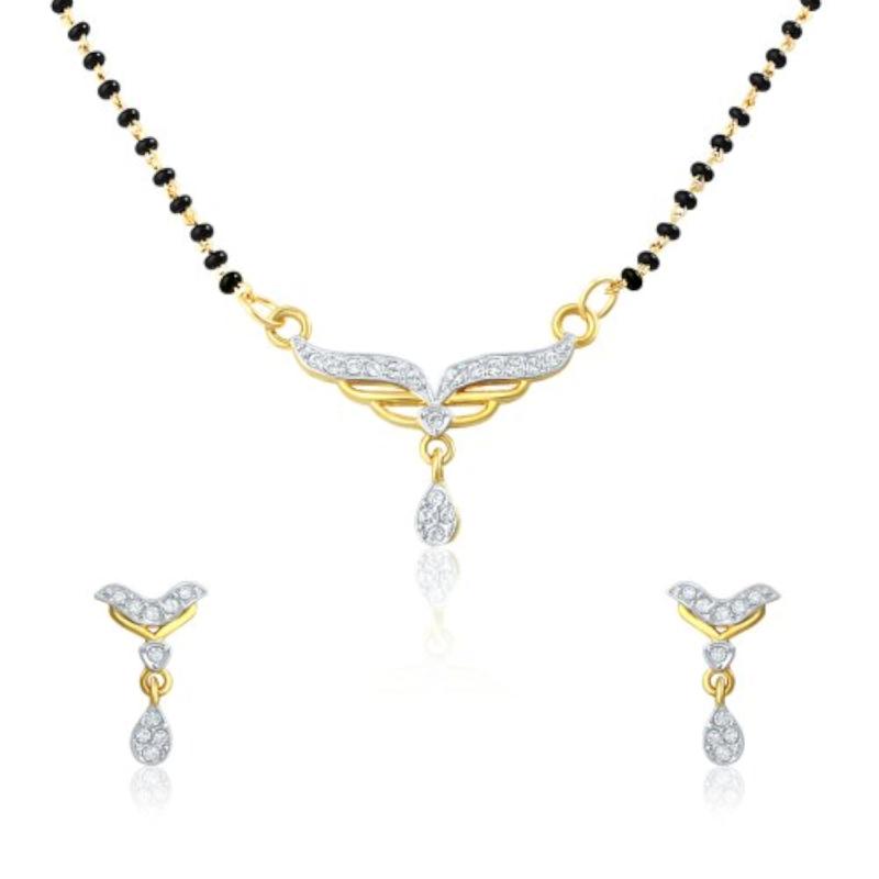 Elegant plated mangalsutra set made of brass alloy with sparkling CZ stones. Perfect for traditional occasions.