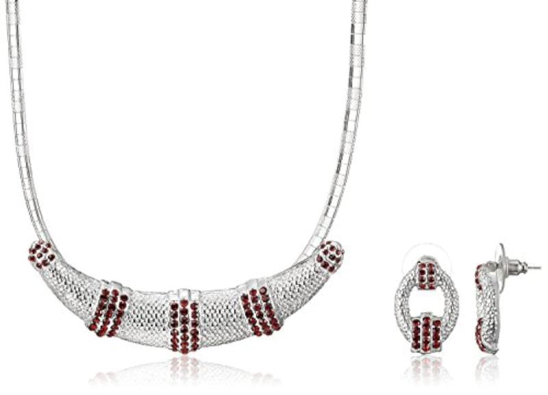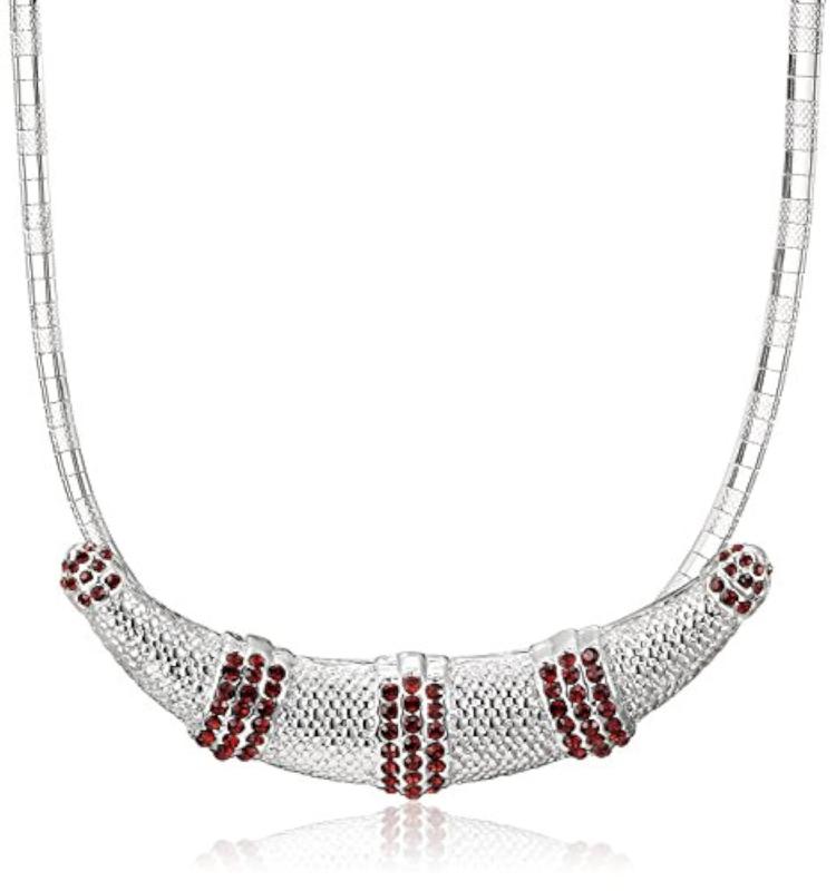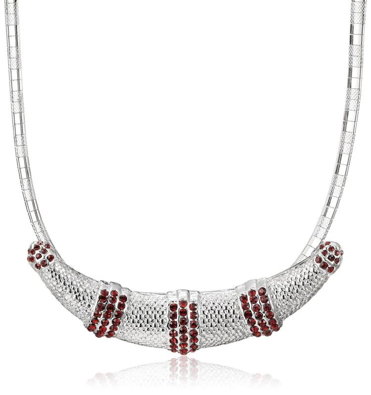 Elegant choker necklace featuring stunning red Swarovski crystals. Rhodium plating adds a touch of sophistication.