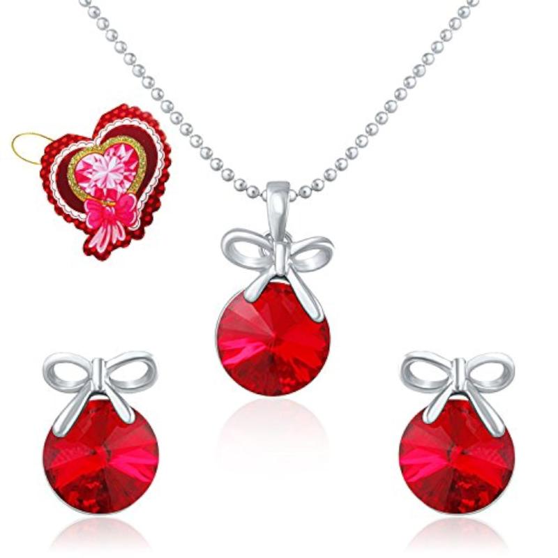 This stunning pendant set features a vibrant red Swarovski crystal heart, perfect for adding a touch of glam to any outfit.