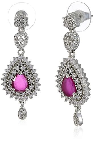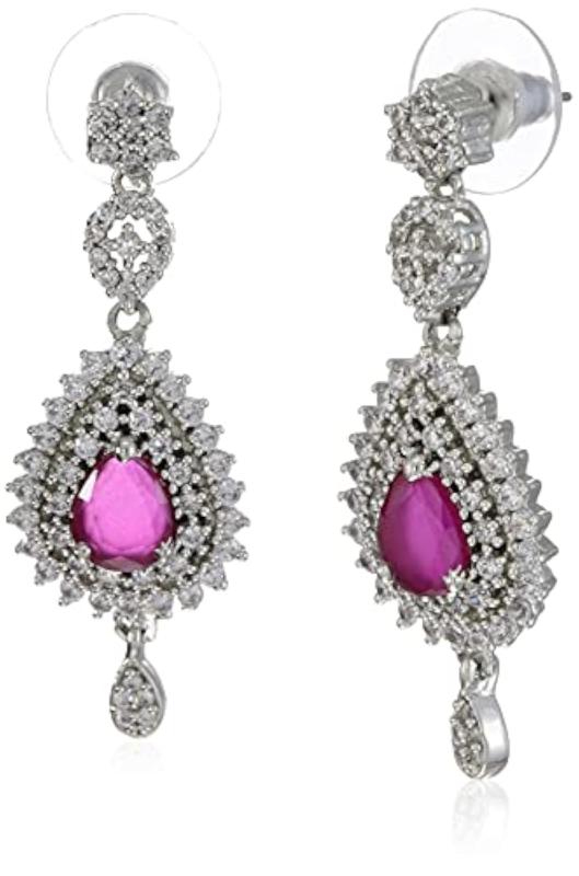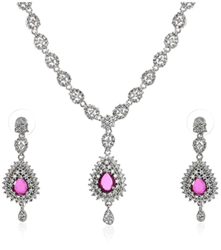 Complete your elegant look with this stunning set featuring Austrian crystals and pink droplets. Rhodium plating adds a touch of luxury.