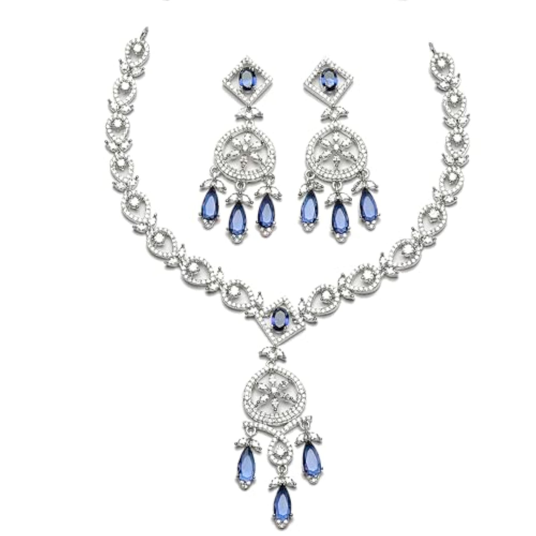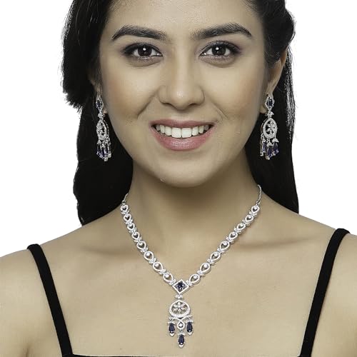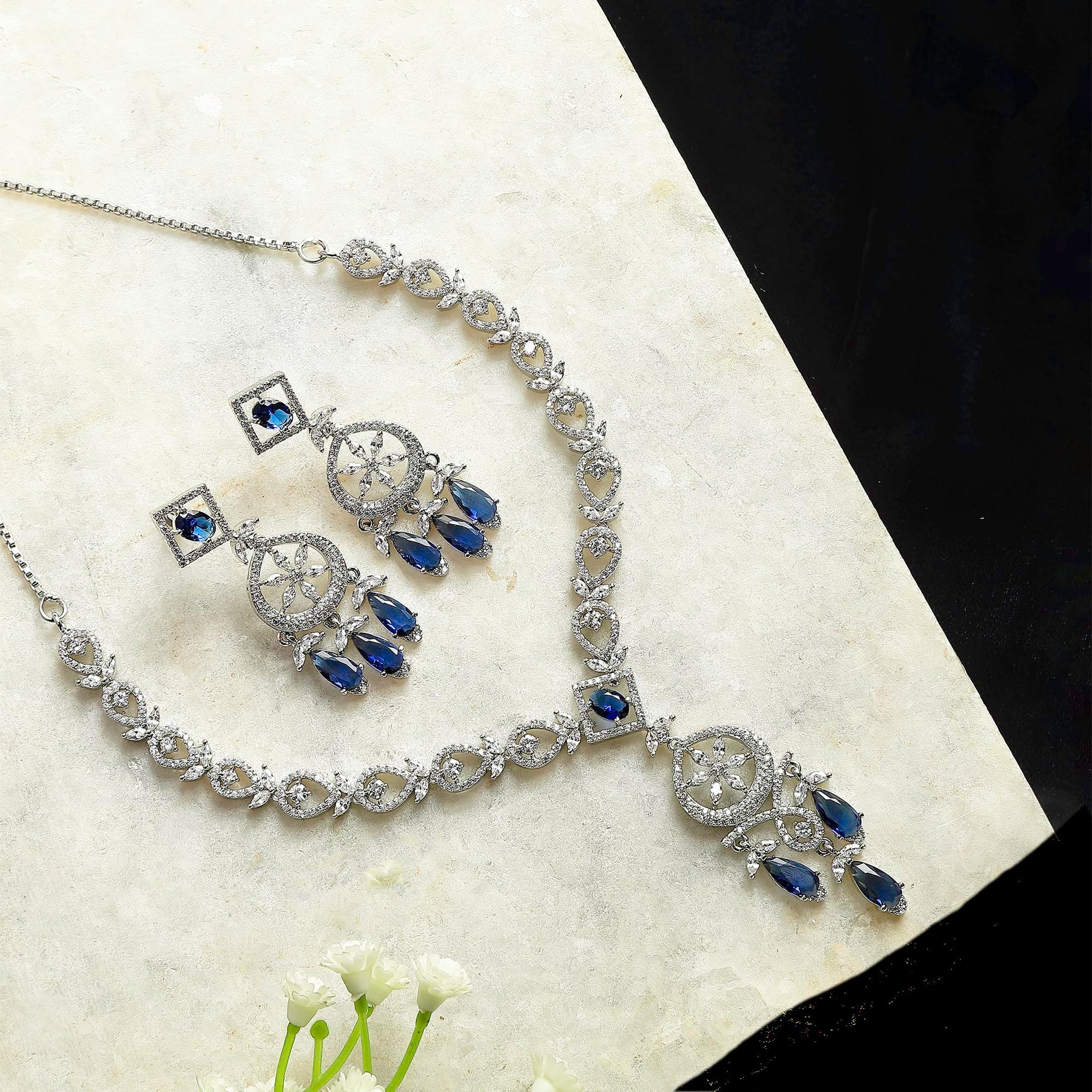 Elegant and sparkly jewellery set featuring baguette teardrops American diamonds studded necklace with matching earrings. Perfect for special occasions.
