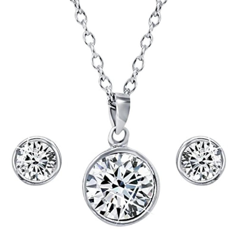 Elegant pendant set featuring Swarovski Crystal with rhodium plating.