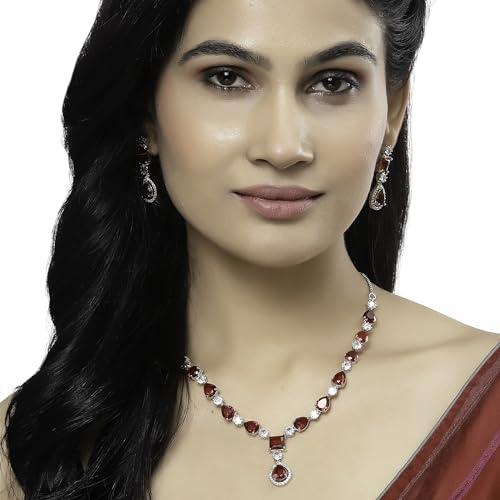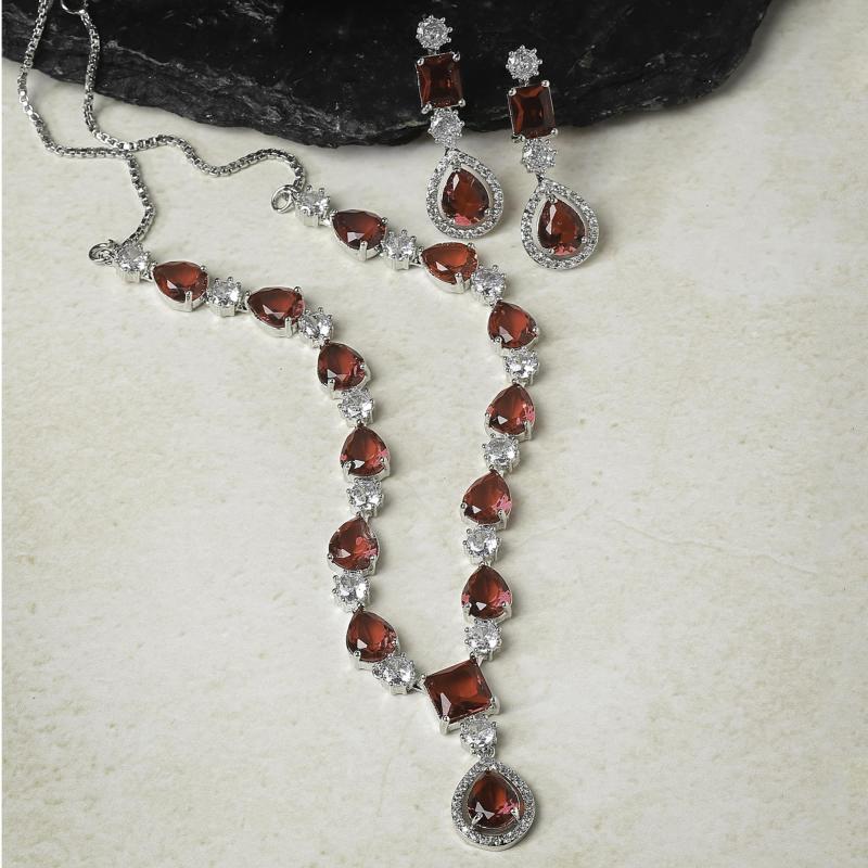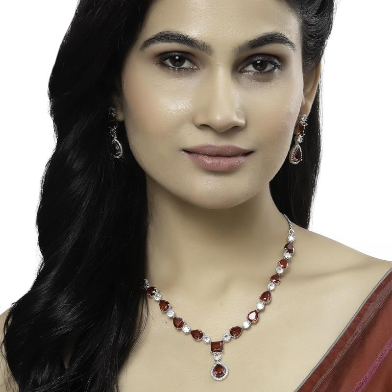 Elegant rhodium-plated necklace set with American diamond studs. Perfect for enhancing your style.