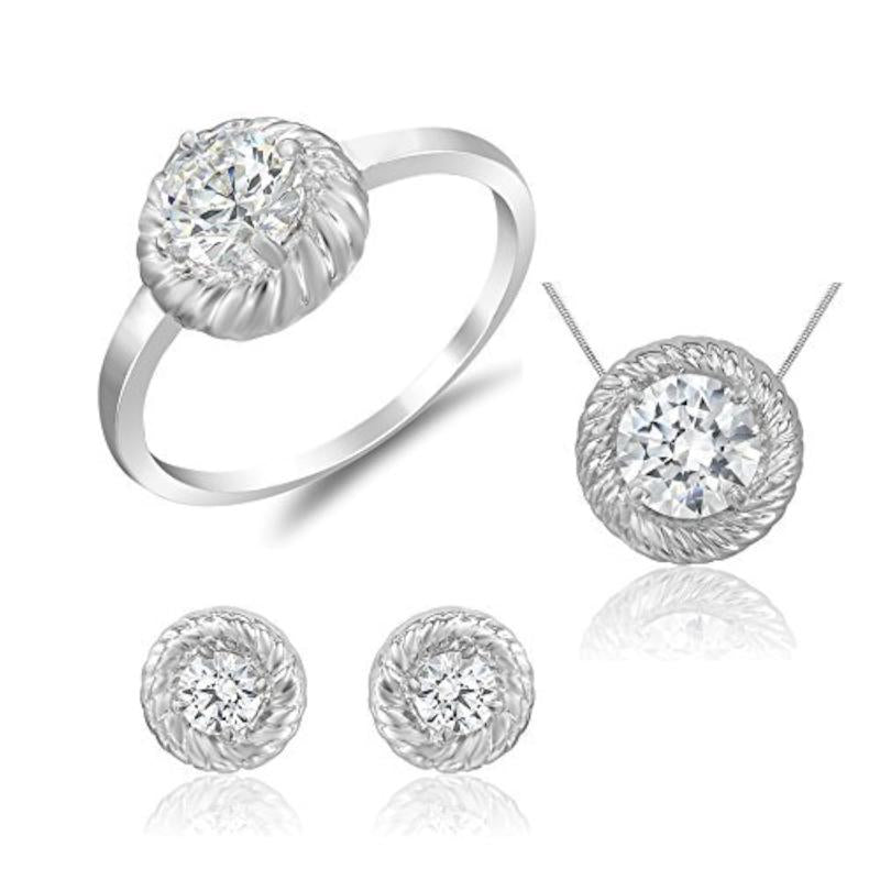 Elegant pendant set featuring Swarovski Zirconia crystals. Rhodium plated for lasting shine and durability.
