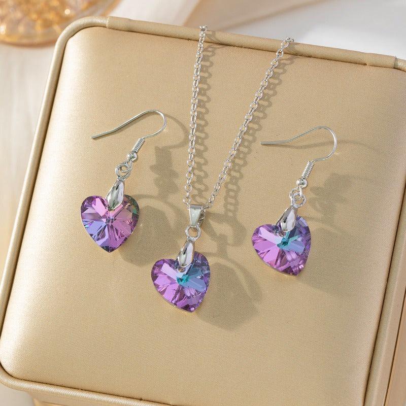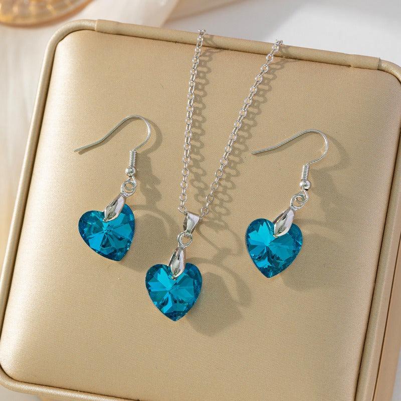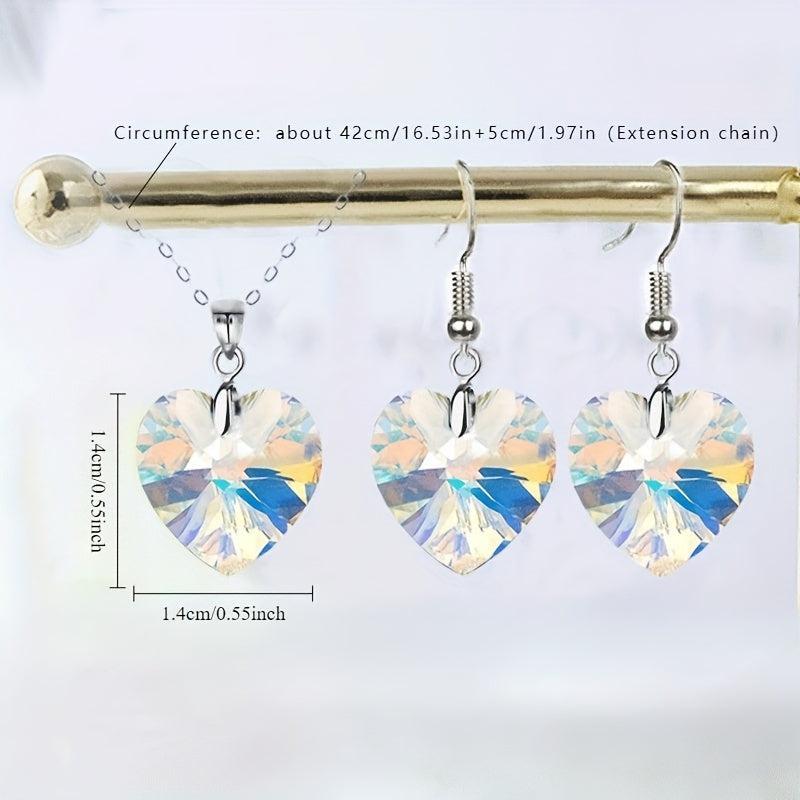 Complete your bridal look with this romantic jewelry set featuring a heart pendant necklace and earrings. Perfect for weddings and special occasions.