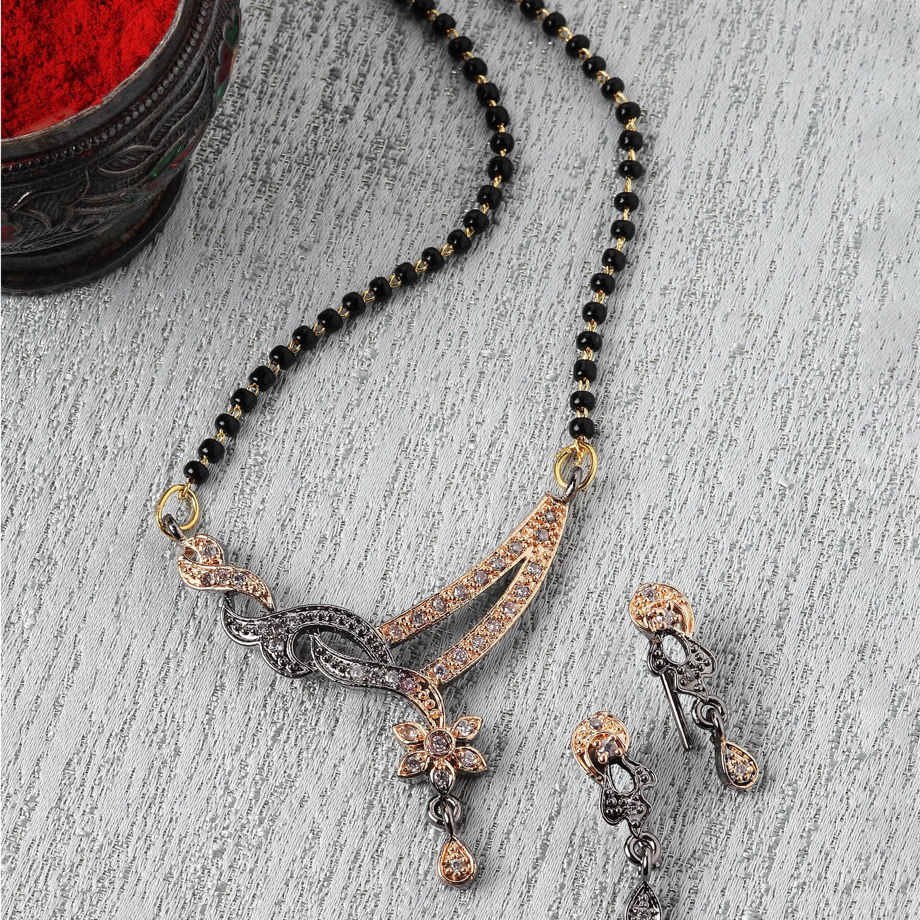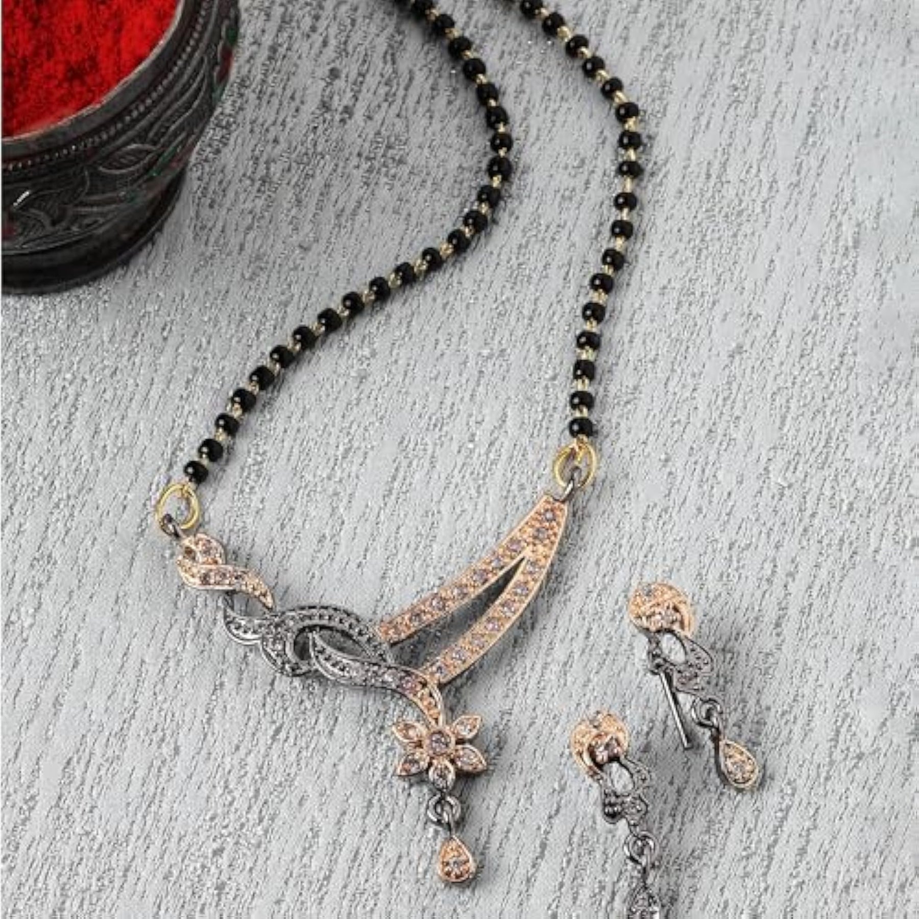 Stunning set with artificial stones and beads for a graceful look.