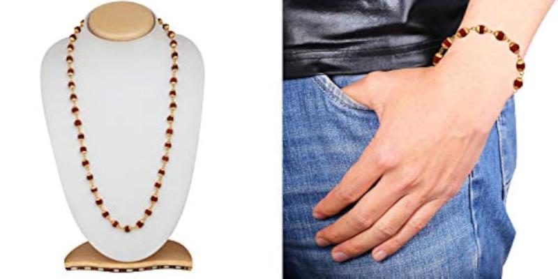 This combo set includes a 24-inch Rudrakshaa mala and a bracelet suitable for men. It is believed to bring positive energy and protection.