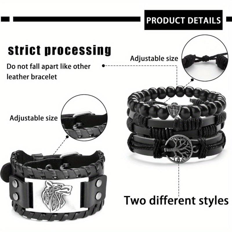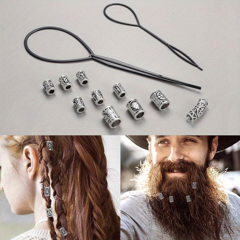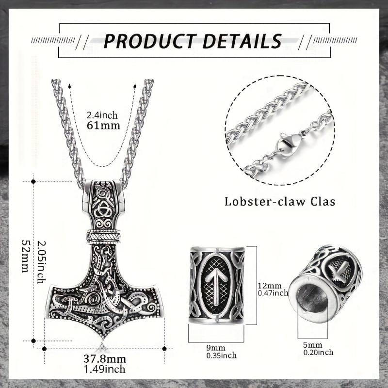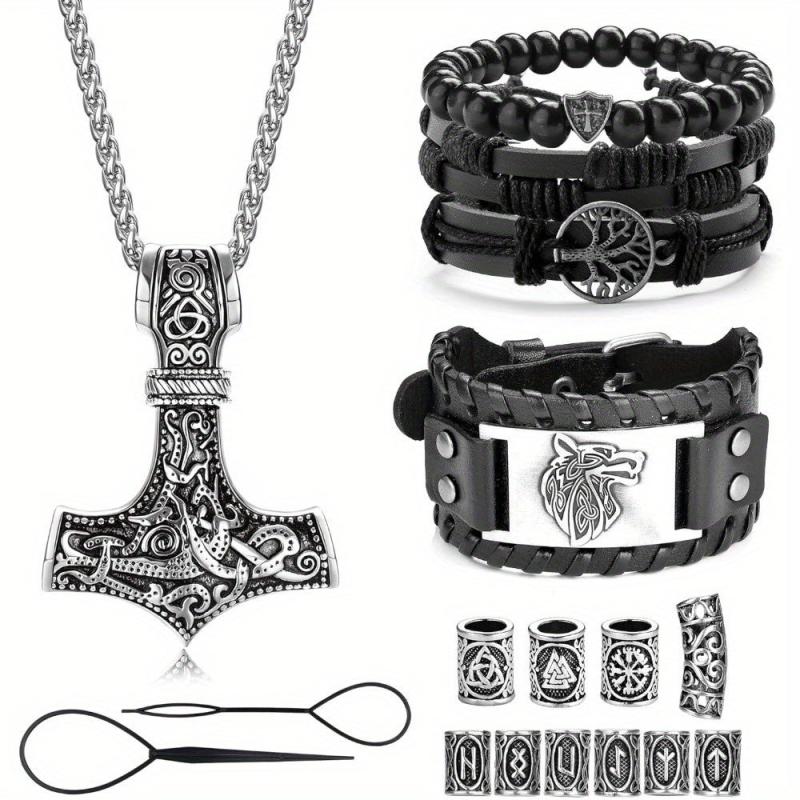 This set includes 15 necklaces for men featuring a Thor's Hammer pendant, Viking beard beads, hair beads, and braided leather bracelets. Perfect for a Viking-inspired look.