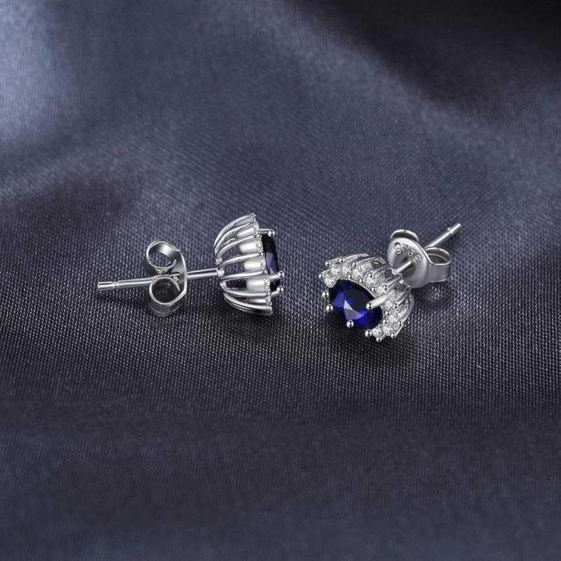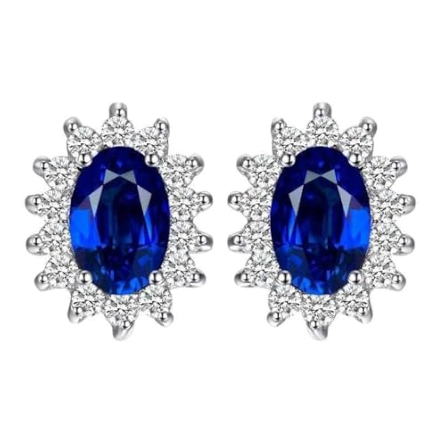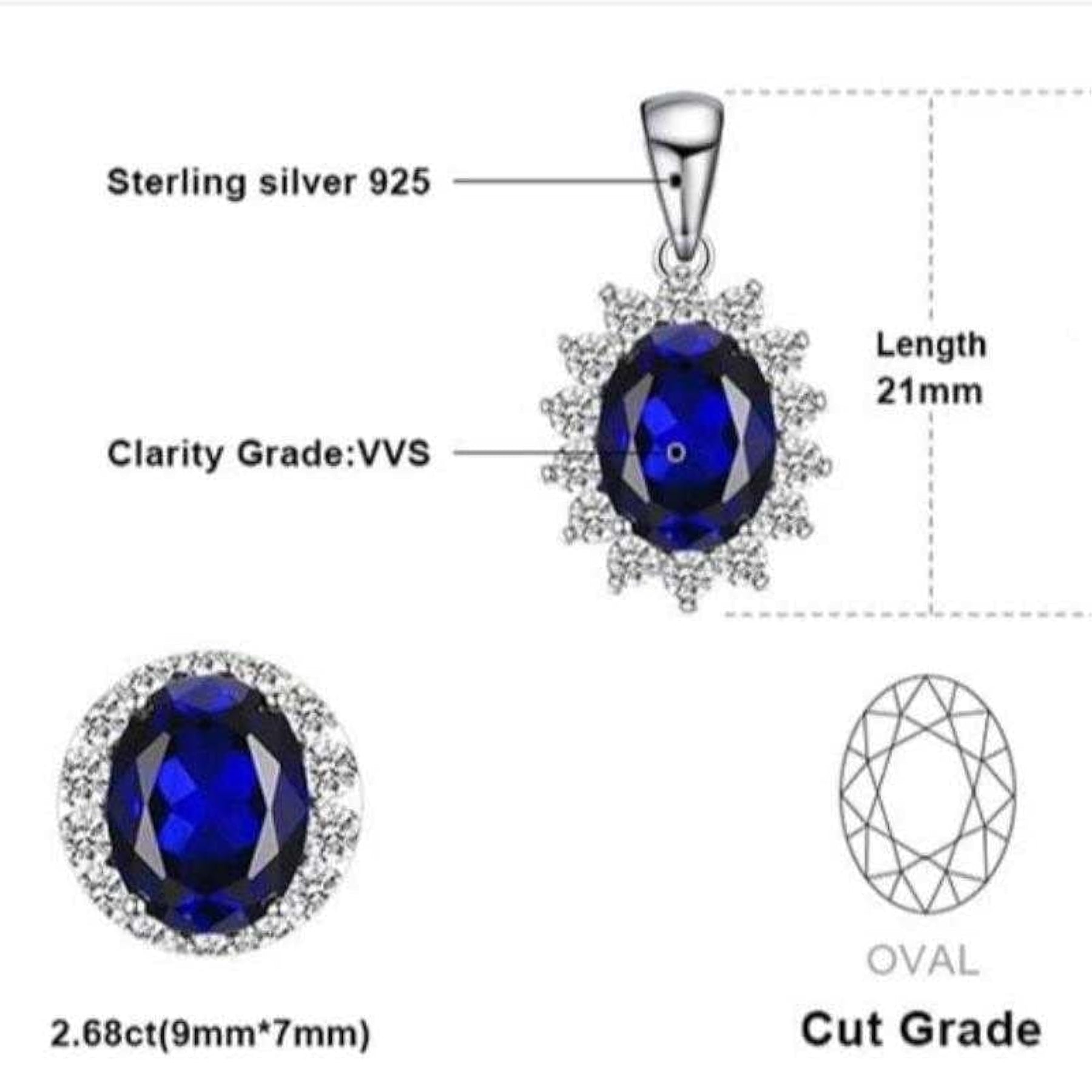 Complete your look with this elegant jewelry set featuring oval-shaped sapphire stones. The set includes a pendant necklace with a matching pair of stud earrings, all made from silver plated metal. Perfect for any occasion!