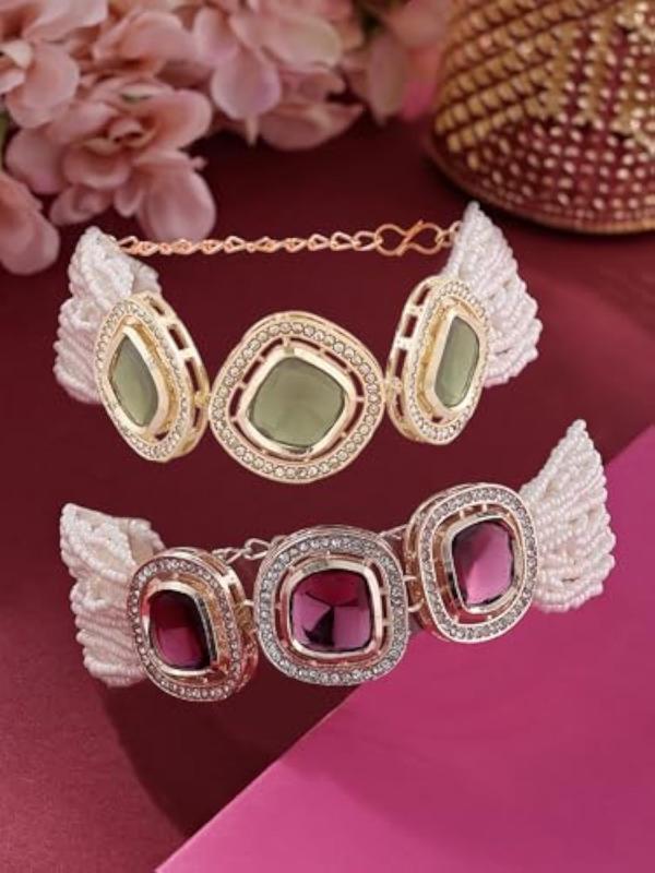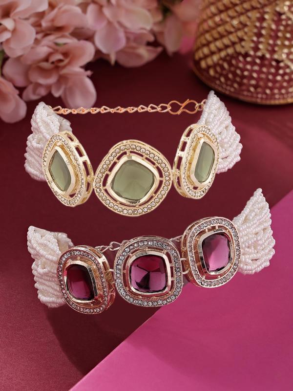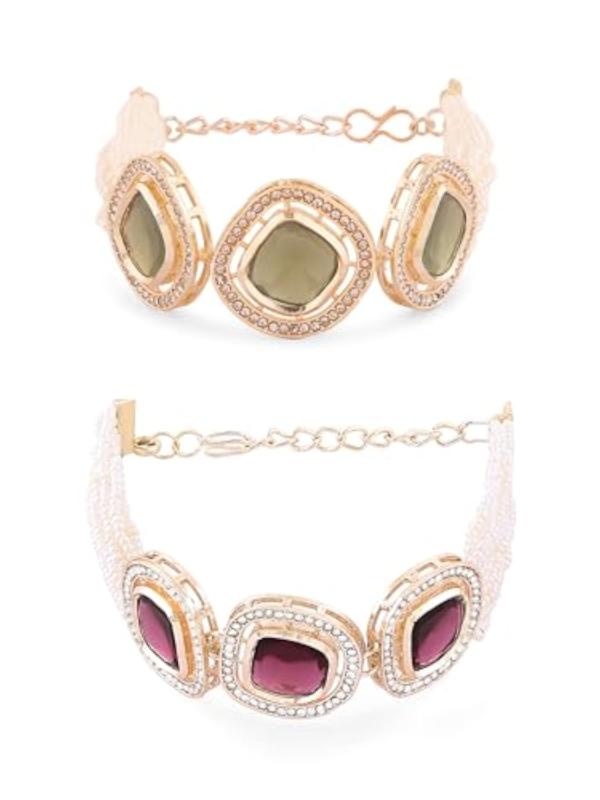 Elegant set of 2 multistrand bracelets adorned with dazzling Austrian diamonds and beads. Perfect accessory for women to add a touch of glamour to any outfit.