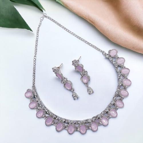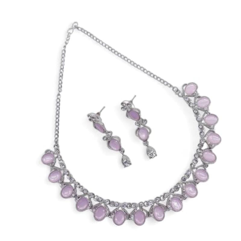 Elegant silver plated necklace set featuring stunning rhinestones and gemstone embellishments. Perfect for women and girls who love delicate jewelry.