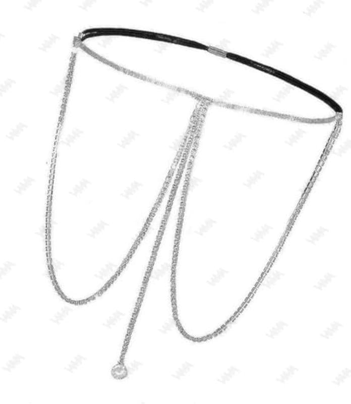 Elevate your style with this stunning silver rhinestone thigh chain. This boho-chic piece features layered crystals, tassels, and is perfect for the beach or a night out at the nightclub.