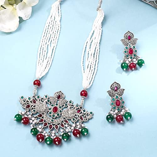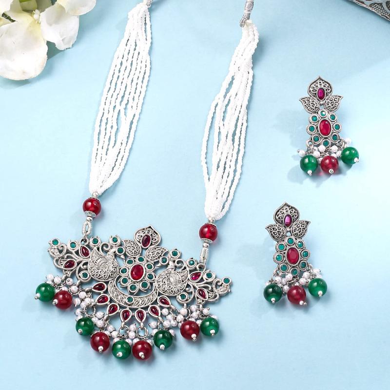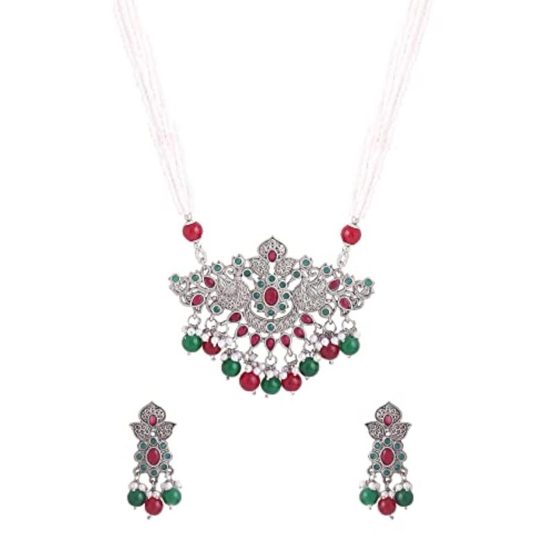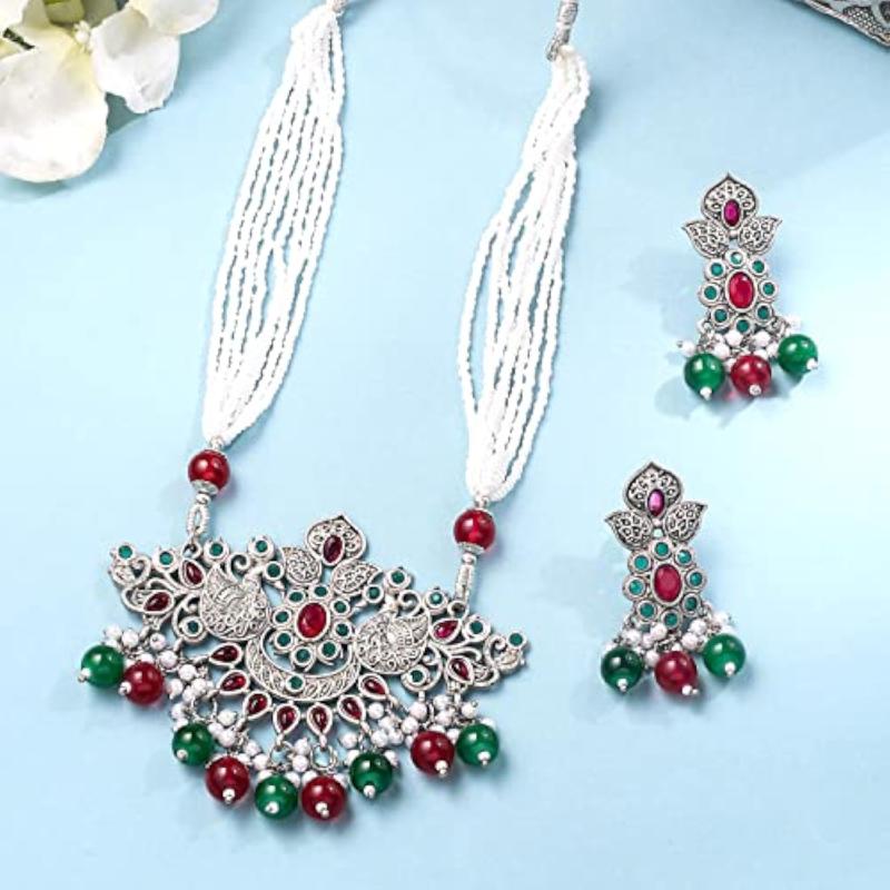 This beautiful jewellery set features a silver tone beaded necklace with a big charm pendant, perfect for birthdays, anniversaries, and gifts for wives.