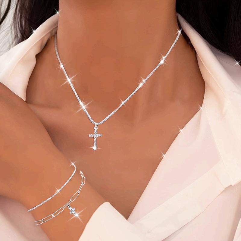 Elevate your style with this set of 3 shimmering cross jewelry pieces, ideal for vacations or daily wear.