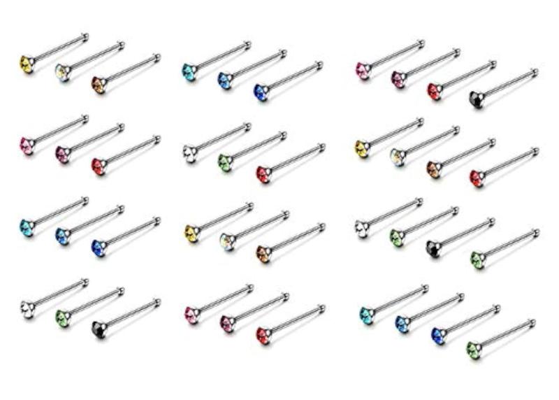 Add some sparkle to your look with this set of 60 stainless steel nose pin studs featuring crystals. Perfect for daily wear or special occasions.