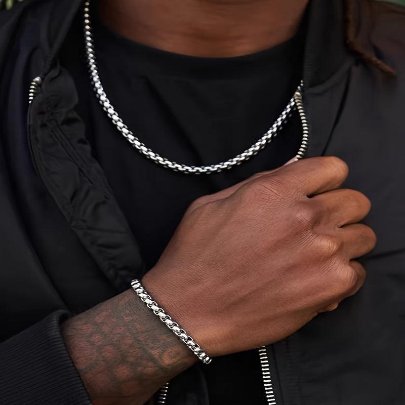 This stainless steel jewelry set includes a silver pearl chain necklace and bracelet, perfect for men and women. The never fading material ensures long-lasting wear.
