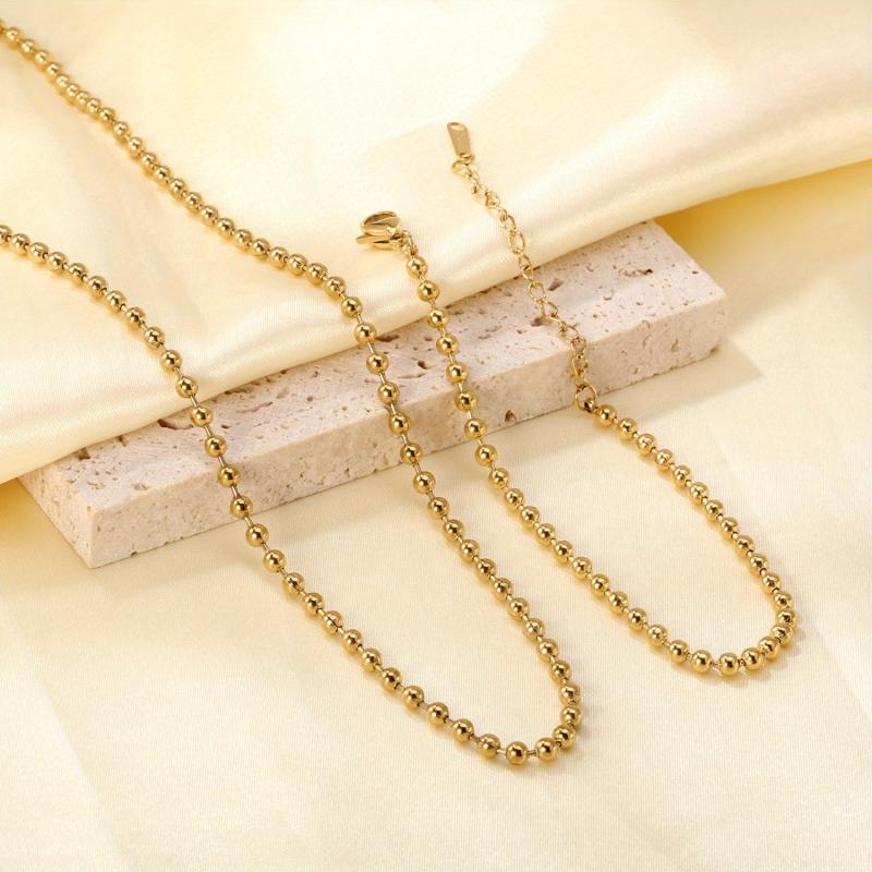 Elegant and durable stainless steel round bead chain necklace and bracelet set, perfect for daily wear.