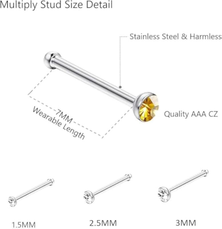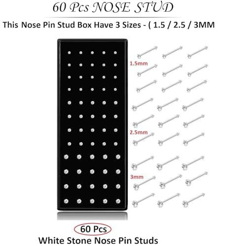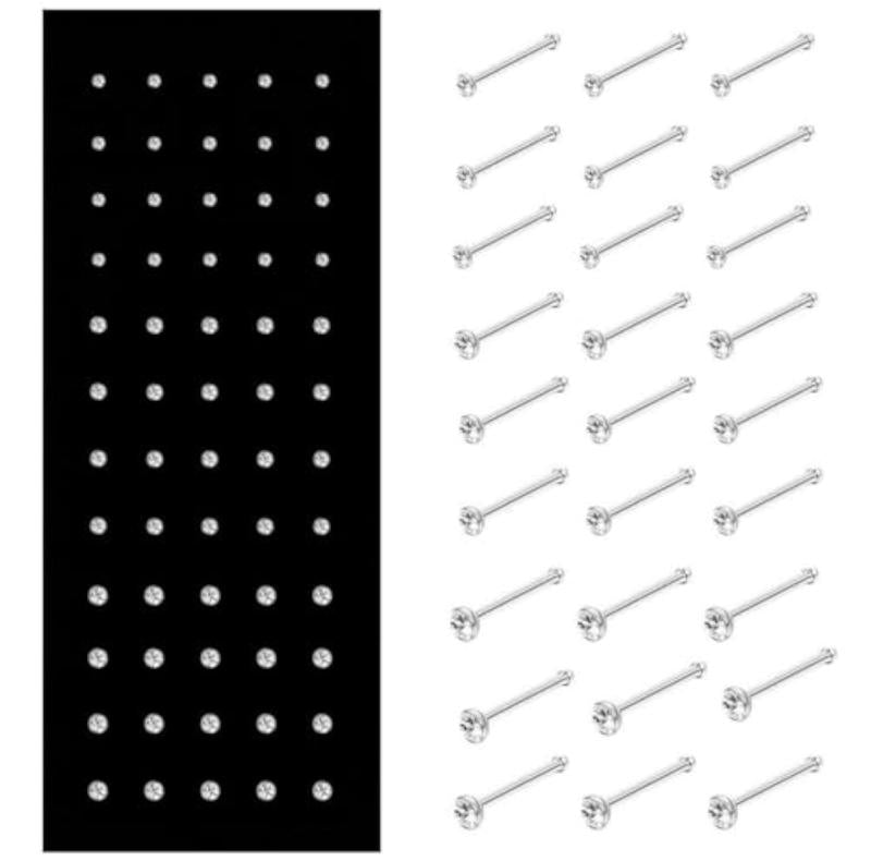 Elevate your style with this set of sterling silver nose studs. Each set includes 60 pieces of nose jewelry in different sizes for versatile styling.