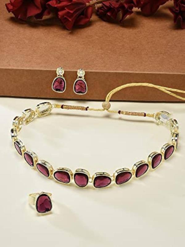 Elegant and stylish fusion jewelry set adorned with shimmering stones. Perfect for women who love to accessorize.