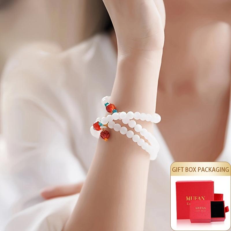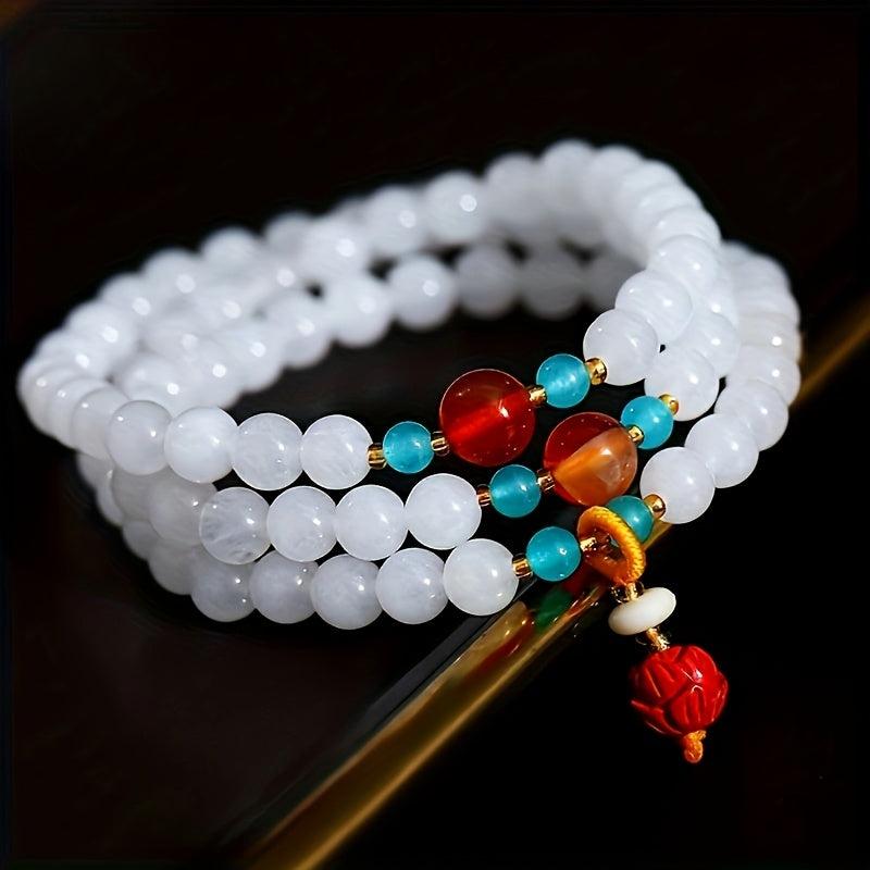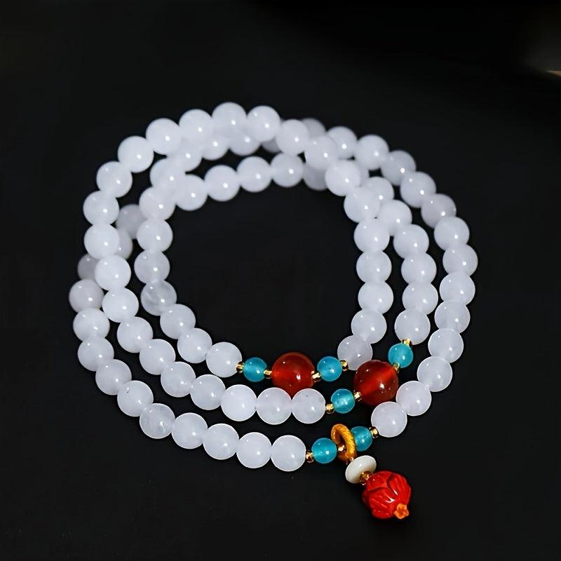 A versatile bracelet featuring 6 7mm beads that can be worn as a wrap bracelet or a necklace. Made with an elastic cord for easy wear.