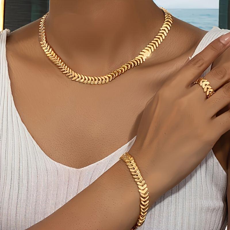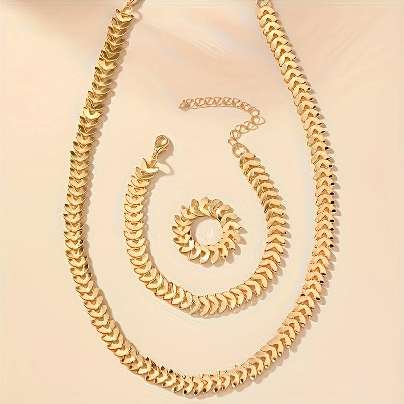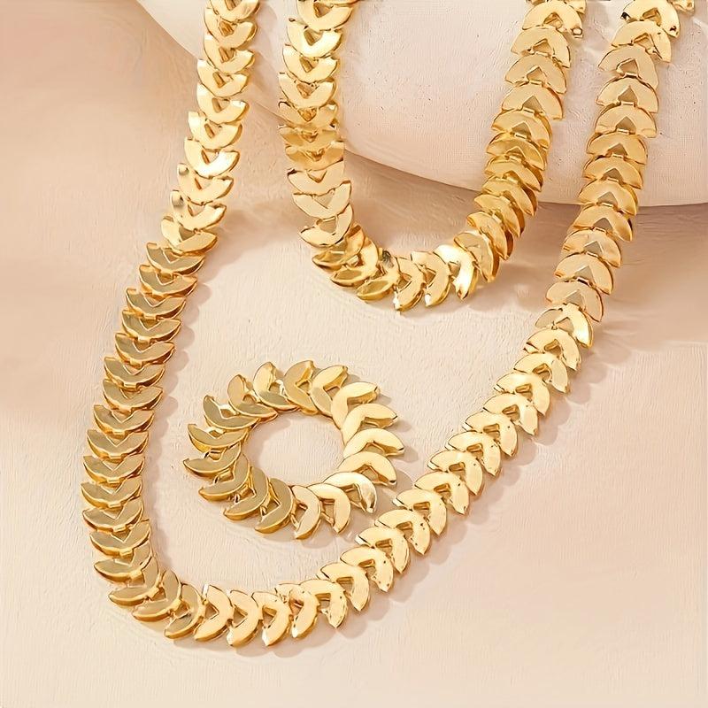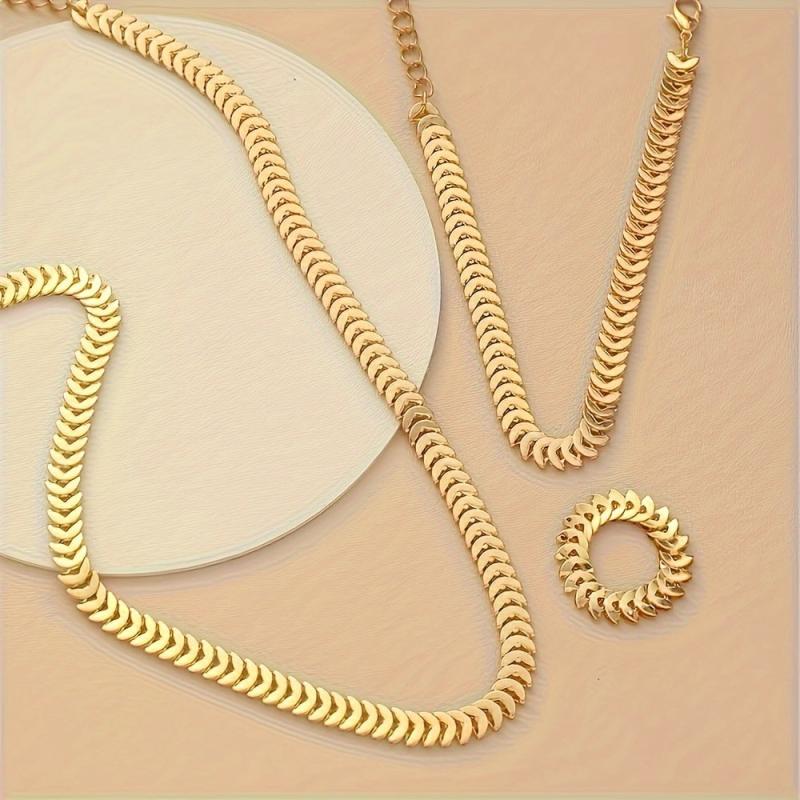 This set includes a wheat ear ring, bracelet, necklace, and collarbone chain with a trendy design.