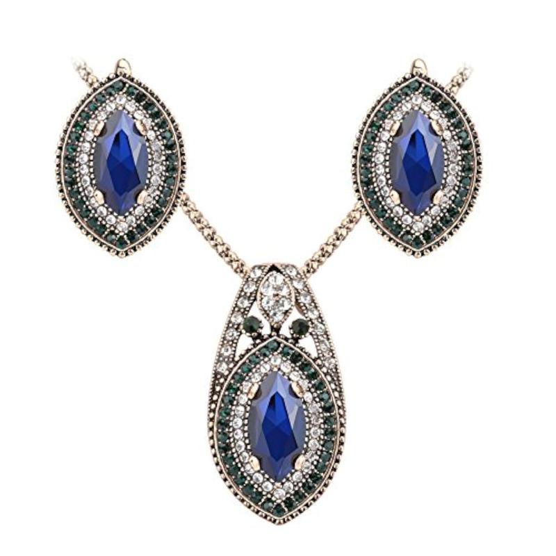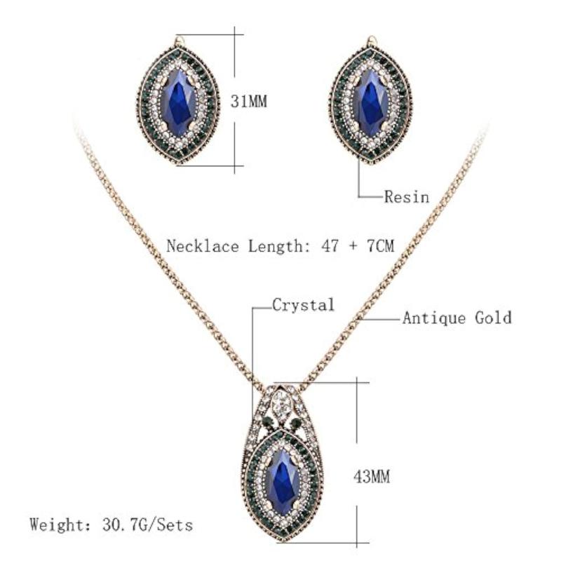 This jewelry set includes a stylish chain pendant necklace and matching earrings, perfect for traditional occasions.