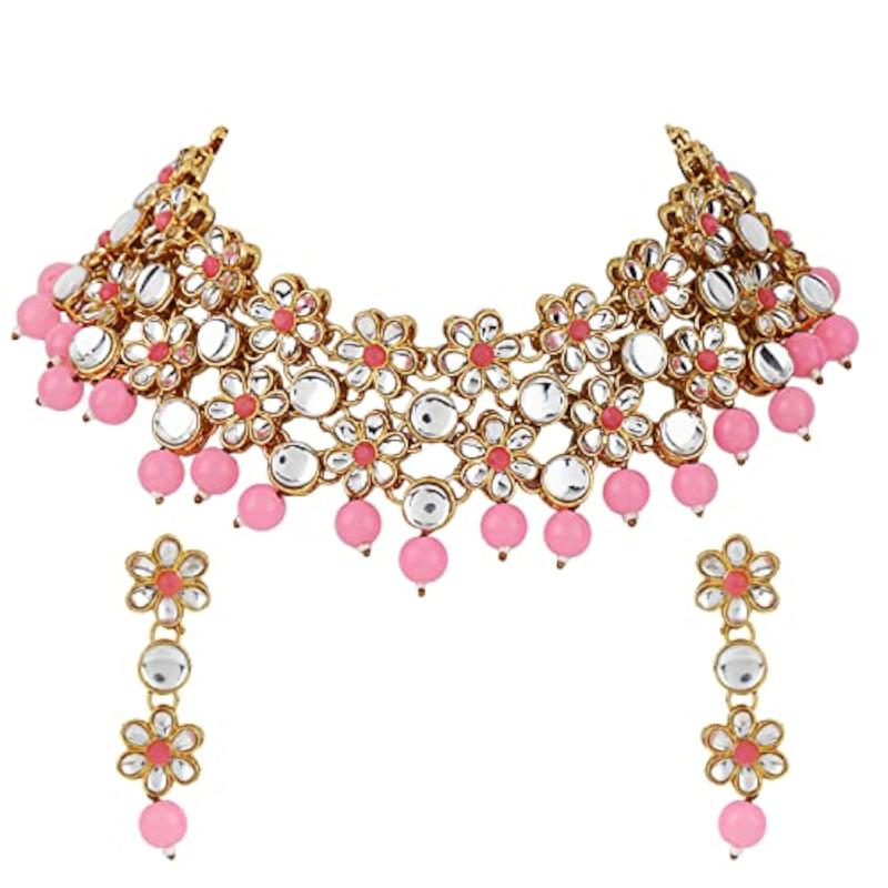 Elegant and traditional Kundan necklace set perfect for special occasions.