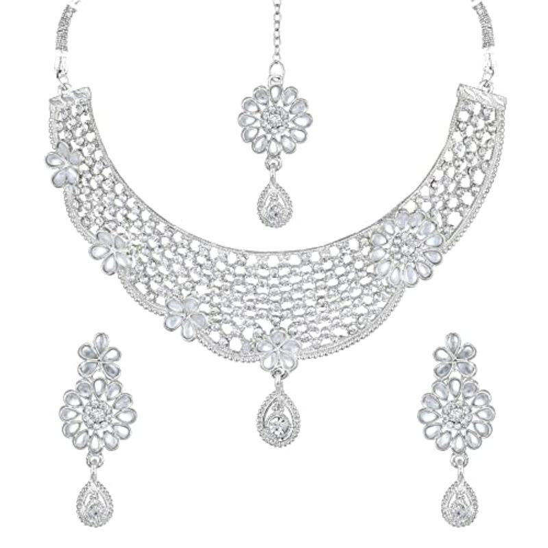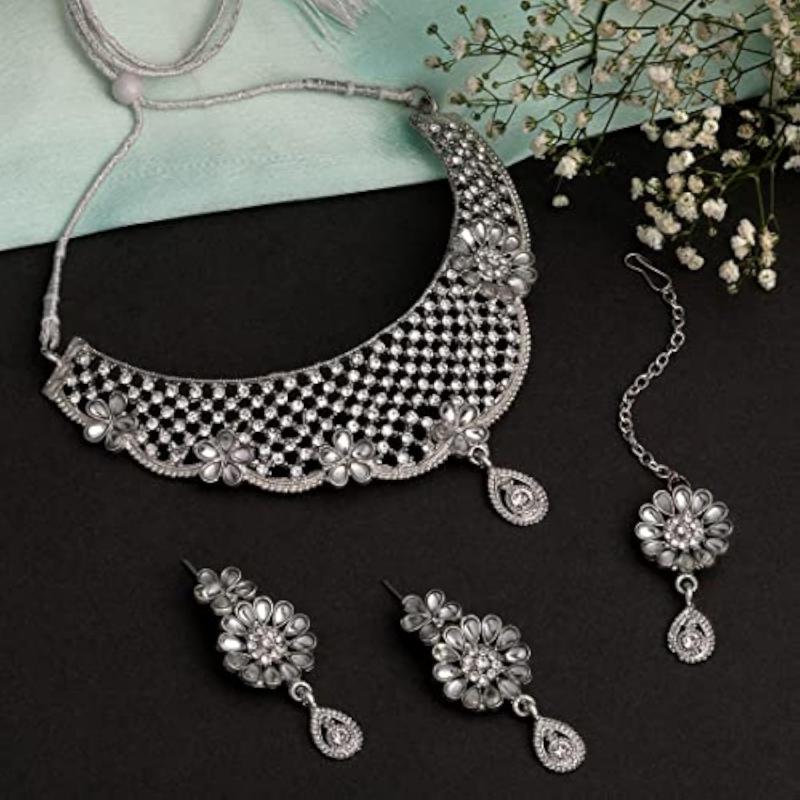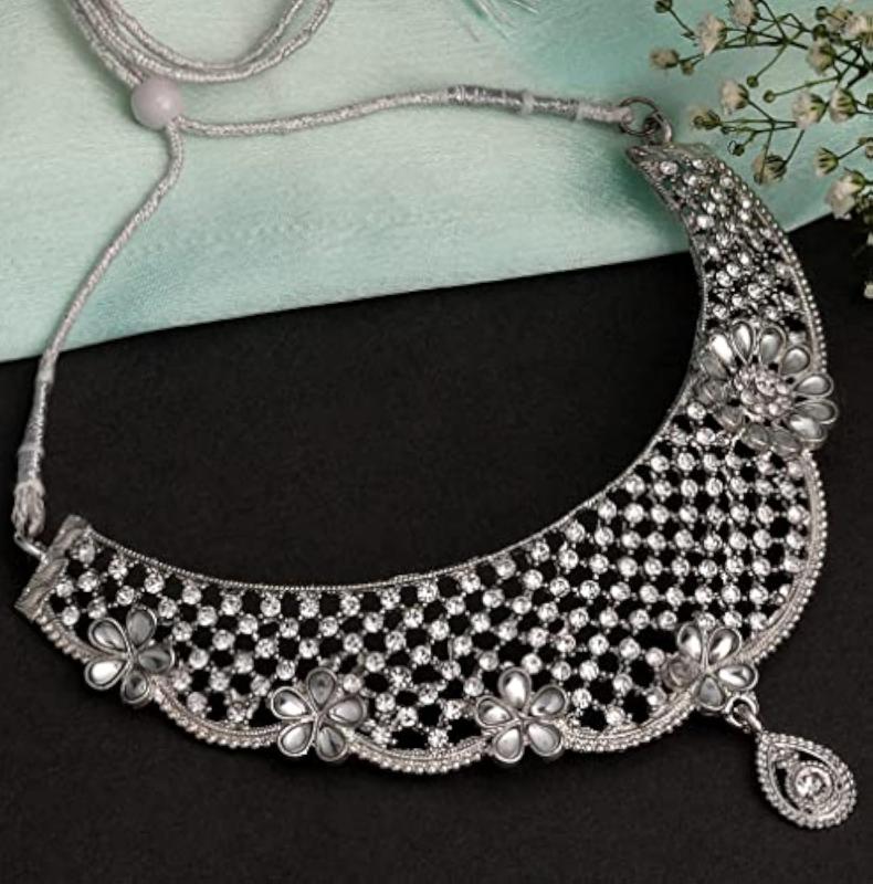 Elevate your look with this stunning choker necklace set featuring intricate traditional design, studded with sparkling diamonds and plated for a luxurious finish.