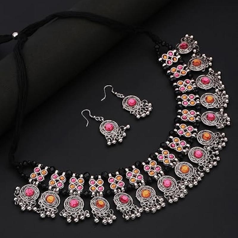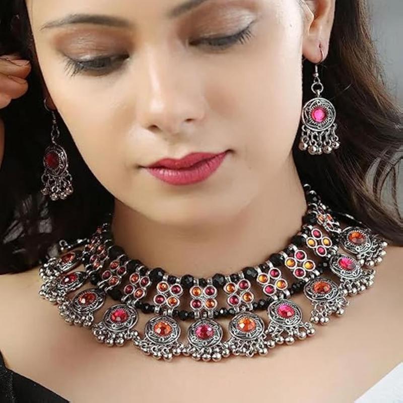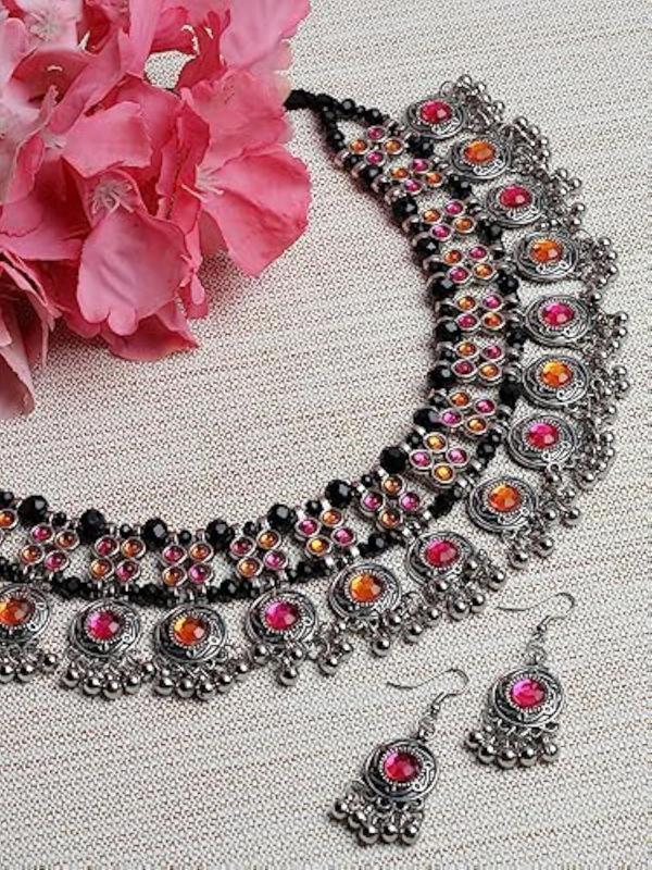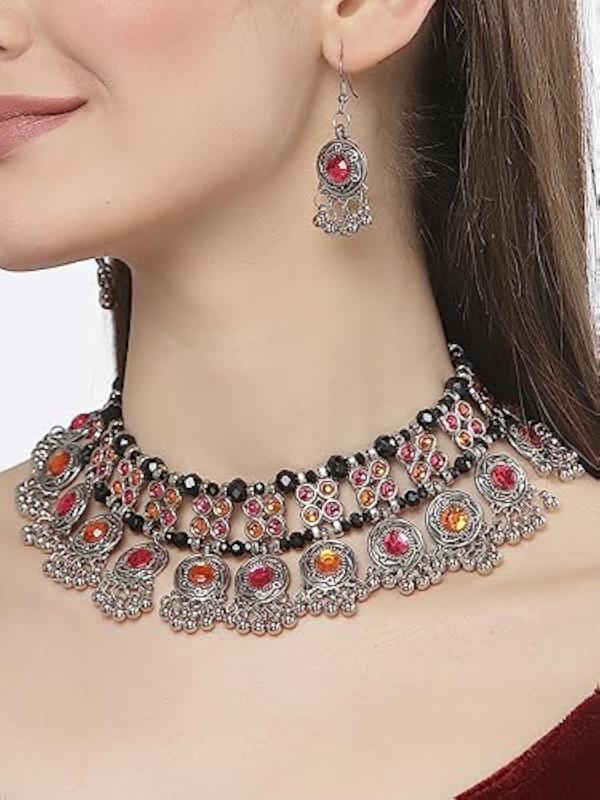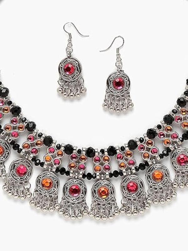 Upgrade your style with this fancy oxidized jewellery set featuring intricate designs. Perfect for adding a trendy touch to any outfit.