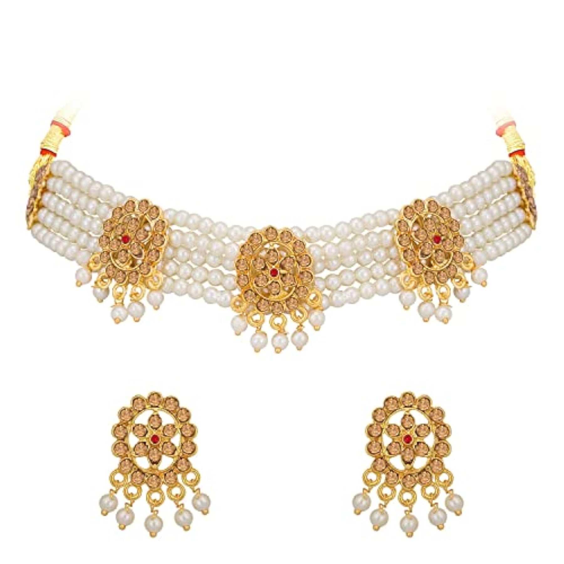 Elegant plated floral design with Kundan stones. Perfect for weddings and special occasions.