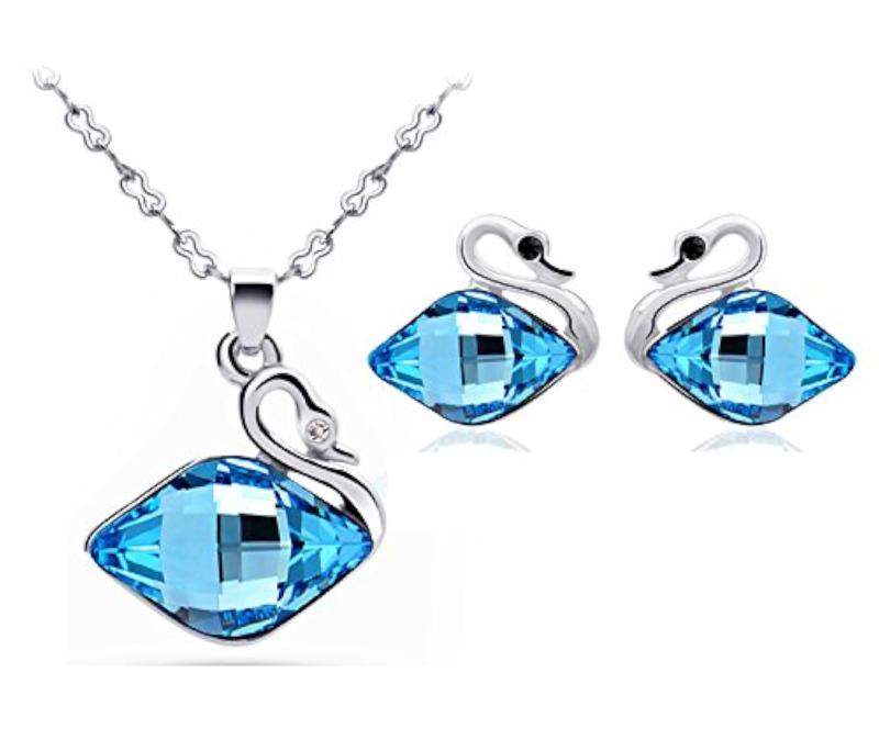 Adorn yourself with this elegant swan shaped crystal pendant set, complete with matching earrings.