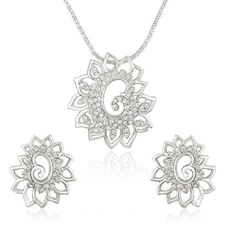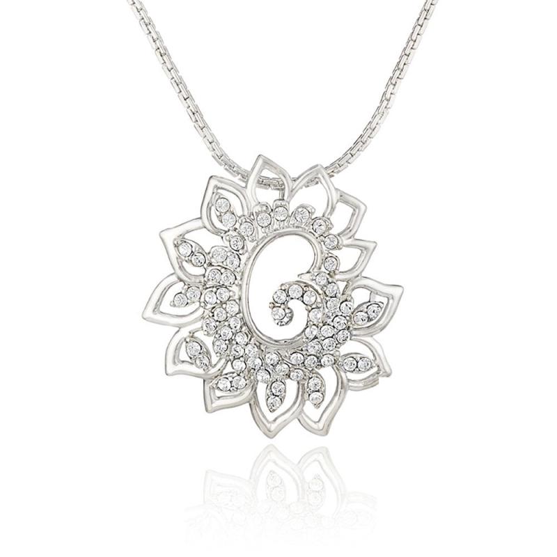 Elegant pendant set with Swarovski Crystals in a rhodium plated finish. Perfect for adding a touch of sparkle to any outfit.